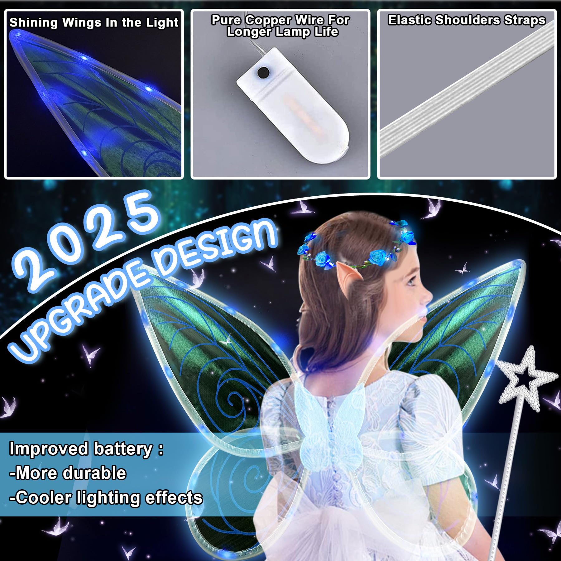 Style unique : la couronne exquise et unique, les oreilles d'elfe et les ailes de fée sont les accessoires parfaits pour votre costume de princesse elfe. Costume Ailes Fée Papillon Costume D'ailes De Fée, Ailes De Papillon Avec étoiles Ailes Organza Scintillantes Enfant Adulte Apportez joie et bonheur. La construction robuste en arceau permet de plier les ailes de papillon sans se casser, ce qui les rend légères et robustes. Cadeau de fée : chaque fille rêve de devenir une fée. Portez-le et transformez-vous en une belle fée dansant entre les fleurs Les ailes de fée Banque de photographies et d'images à haute résolution - Alamy Avec la baguette étoilée, les autocollants pour le visage scintillants et la poudre de paillettes en trois couleurs, le style peut être complété individuellement. Les ailes de fée diffusent une atmosphère féerique ; portez-les et devenez la plus belle fée des papillons. Ainsi, vous complétez parfaitement votre tenue et attirerez tous les regards lors de la fête Chaque paire d'ailes est équipée d'une bande élastique qui s'adapte facilement aux épaules et au dos Convient à toutes les occasions : ce magnifique ensemble d'ailes de fée est parfait pour les soirées à thème, les fêtes féeriques, le carnaval, Halloween, Noël, les bals masqués, les mariages, les anniversaires, les spectacles sur scène et la vie quotidienne. Description du produit Transformez-vous en une vision magique avec notre délicieux ensemble d'ailes et de baguette de fée papillon. Embrassez votre enchanteresse intérieure avec cet ensemble captivant qui vous fera palpiter de joie. L'ensemble comprend des ailes éthérées qui scintillent comme des pétales irisés et une baguette fantaisiste qui dégage un charme mystique Emballage économique : le costume comprend une aile de papillon LED, une guirlande LED, une paire d'oreilles de fée et un bâton de fée étoilé. · Matériaux sûrs... Les ailes scintillantes en organza transparent reflètent la lumière dans des couleurs magiques et sont confortables à porter grâce aux sangles élastiques. Que ce soit pour les enfants ou les adultes, cet ensemble apporte une joie magique à toutes les occasions et attirera tous les regards. Donnez à votre apparence un look éclatant et charmant Description du produit Transformez-vous en une fée papillon féerique en un tour de main avec ce magnifique ensemble d'ailes de fée.