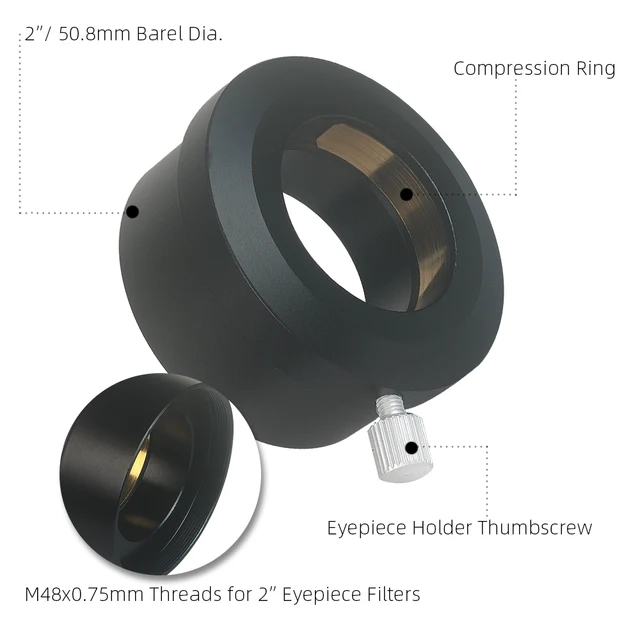 Connexion Transparente M42 M48 Adaptateur D'anneau De Télescope, Adaptateur D'anneau De Couplage En Alliage Aluminium Traitement Anti-reflet Anneau D'Oculaire Astronomique Akzozn Anneau Adaptateur Pour Télescope... Ausla Anneau Adaptateur de Télescope Astronomique, en Alliage [INSTALLATION FACILE] Installez cet anneau adaptateur télescopique flexible et pratique en toute simplicité et sans tracas. Connexion sans couture : cet adaptateur de télescope permet une connexion transparente entre les raccords M42 et M48, offrant plus de commodité lors de... [FIL PRÉCIS] Comprend un filetage mâle M42 x 0,75 mm et un filetage femelle M48 x 0,75 mm pour un ajustement sécurisé. Données techniques : Type d'article : anneau adaptateur télescopique Matériel: alliage d'aluminium Spécification du filetage femelle : M48 x 0,75 mm Spécifications du filetage mâle : M42 x 0,75 mm (communément appelé filetage T2) Profondeur de filetage : 3 mm Distance entre les brides : 4 mm Longueur totale : 7 mm Diamètre du trou intérieur : 39 mm Diamètre extérieur du cadre : 50,7 mm ± 0,1 mm Liste des forfaits : 1 x anneau adaptateur télescopique 1 x boîte de rangement en plastique [CONNEXION SANS COUTURE] Connectez facilement les connecteurs M42 et M48 ensemble pour une structure télescopique parfaite. Description du produit Anneau Adaptateur de Télescope, Adaptateur D'anneau de Couplage en Alliage D'aluminium Robuste M42 à M48 pour une Connexion Transparente du Filtre D'objectif de Télescope