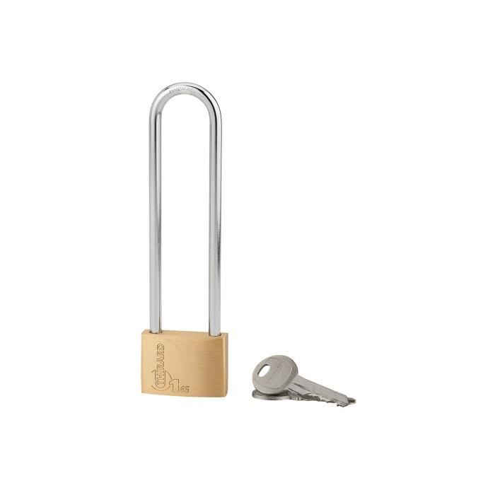 Cadenas d'artillerie THIRARD 29C coudé anse laiton | Leroy Merlin Déverrouillage par clé Cadenas Escape Game Cadenas D'artillerie Talon Droit Anse Laiton Triangle 9 Mm Cadenas Robuste Thirard Fabriqué en laiton massif, ce cadenas de pompier ou cadenas d'artillerie est spécialement conçu une condamnation sans risques des locaux et entrepôts. Avec ce cadenas, vos espaces seront sécurisés mais l'accès des pompiers sera toujours possible. En effet, une forme spécifique - triangle, demi-lune ou carré - condamne le cadenas. Les clés des formes correspondantes sont en... Cadenas artillerie à talon coudé 29 corps laiton l47mm anse acier...