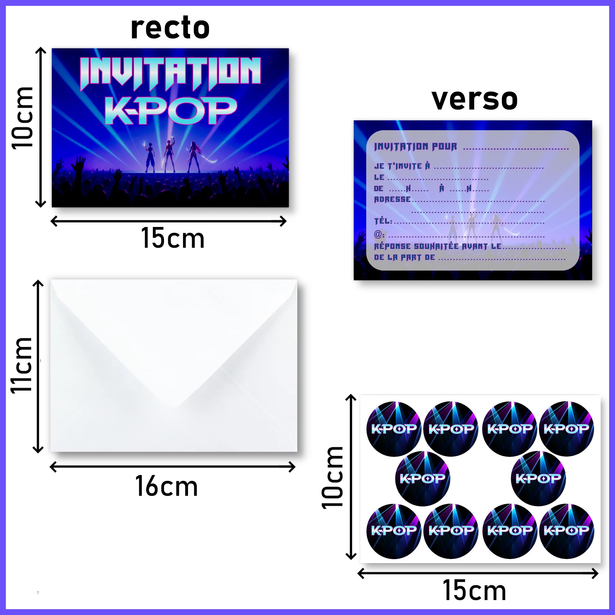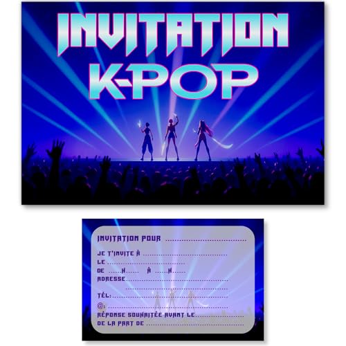 Idée Originale Anniversaire Fille Garçon DREANA Kit Créatif 20 Cartes Invitation Anniversaire Fille En Français Cartes Invitation K-pop Anniversaire Conception de modèle de cartes d'invitation mariage tulipes modernes Conception de modèle de cartes d'invitation mariage tulipes modernes... Fabriquées en France par DREANA, ces invitations sont conçues pour impressionner vos invités et créer des souvenirs mémorables. 🌟Une fête d'anniversaire réussie commence toujours avec de belles invitations !, !, !, 🌟 🎶 Thème K-pop unique – Invitations d’anniversaire au design exclusif inspiré des K-pop Parfaites pour les fans des K-pop de tout âge, ces invitations donneront le ton à votre fête et créeront l'excitation dès leur réception. ✨ Original & pratique – Design lumineux K-pop qui attire l’œil, prêt à l’emploi et idéal pour un anniversaire original et tendance. 🌟CONTENU DU PACK: Lot de 20 cartes d'invitation thématiques K-POP, design moderne et élégant pour une fête inoubliable DESIGN UNIQUE: Illustration spectaculaire du concert des K-POPFORMAT PRATIQUE: Cartes de 16 x 11 cm avec espace pour remplir tous les détails de l'événement, incluant nom, date, heure et lieu 🌟 🌳ENGAGEMENT ECO-RESPONSABLE ET SOUTIEN A UNE ENTREPRISE FRANÇAISE🌳 En choisissant ce produit, vous contribuez à soutenir une entreprise française engagée dans des pratiques éco-responsables Invitations D'anniversaire Pour Adolescentes
