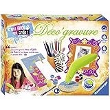 C'EST MOI QUI CRÉE Bougies Maxi - RAVENSBURGER - CoinBébé - Une fois ton objet bien sec, tu vas pouvoir le graver en passant le graveur sur les endroits souhaités. Personnalisation Pot Bloc-notes Cadre Ravensburger - 18593 - Loisir Créatif - Dessins - Déco Mandala Machine Kit Déco'gravure - Choisis ton objet, utilise les pochoirs pour dessiner les motifs que tu souhaites (bien sûr, rien ne t’empêche de créer tes propres dessins), - Peints ensuite l’objet avec les peintures fournies. Achetez votre Ravensburger C'est Moi Qui Crée - Déco'gravure maxi - 18556 dans notre rayon Dessin & peinture sur Rue du Commerce. Coffret artistique Ravensburger C'est moi qui crée ! Bougies maxi (18027) au meilleur prix... Dimensions du packaging : 49,00x34,70x9,70 cm Description du produit : Grave et décore tes propres objets en bois sans danger !, Génial ! Fonctionne avec des piles : 2 piles LR06, non fournies Le graveur ergonomique est adapté aux droitiers et aux gauchers. Un outil sans danger pour graver et personnaliser ses objets en bois ! Déco’gravure est un coffret qui te permet de faire de la gravure sur bois, en toute sécurité, grâce à une technique inédite, sans pointe chauffante.