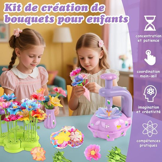 Apprentissage et croissance tranquilles : en les assemblant, les enfants comprennent la structure des plantes, développent leur coordination œil-main et améliorent leur perception des couleurs. KIT DE FLEURS ARTISANAL DIY : Le jeu de création de bouquets en tissu Gaethra comprend 1 machine à fleurs, plus de 100 pétales colorés de formes variées et en différents matériaux, 36 centres de fleurs, 36 bourgeons, 18 tiges longues, 18 tiges courtes, ainsi qu'un vase, du terreau, un pot de fleurs et 4 feuilles de papier cadeau élégant. Contenu riche, prêt à l'emploi immédiatement après ouverture. Un cadeau bien pensé : que ce soit pour une fête ou comme récompense, ce kit n'est pas seulement un cadeau fille 3 4 5 6 7 8 9 10 ans, mais un voyage complet dans lequel les enfants investissent du temps et des émotions et partagent leurs intentions chaleureuses. C'est un excellent choix pour encourager l'acquisition de compétences STEM. APPRENTISSAGE STEM LUDIQUE : Ce n'est pas seulement un kit créatif jouet fille 3 4 5 6 7 8 ans, mais aussi une expérience d'apprentissage pratique ! Activite Manuelle Enfant VTech - Créa-Fleurs Magiques, Atelier Créatif Enfant, Bouquet De Fleurs Musical Fabriqué Avec Des Matériaux Plus Durables, Loisir Créatif, Cadeau Enfant De 4 Ans à 10 Ans - Contenu En Français Kit Créatif Enfant Seagoal Jouets de Construction de Jardin de Fleurs pour Fille 3 4 5 Ans, Jeu Construction Fleurs, Ensembles de Bouquets pour Filles Cadeau Enfant 3+ Ans(140 PCS) | Votre wishlist sur Les enfants apprécient le processus, envoient des bénédictions et la valeur émotionnelle est de première classe. Moments de réunion familiale : créer un bouquet de fleurs ensemble est à la fois communauté et conversation. Ce kit de bricolage pour enfants est idéal pour stimuler l'imagination et la créativité des petits. Circuit Voiture Jouet pour Enfant, FIVEFINE Piste de Voiture Enfant... Que ce soit pour un anniversaire, Noël, la fête des enfants, la fête des mères ou comme récompense dans la salle de classe ou comme cadeau de fête, le kit de bouquet de fleurs Gaethra fait main fera des surprises. Chaque fleur est finement poncée, avec des bords arrondis spécialement conçus pour les petites mains. Tous les éléments sont interchangeables et personnalisables - le nuancier de fleurs en tissu offre des possibilités infinies. Jouet Fille 3-12 Ans, 1127 Pcs Activites anuelles Pour Enfants Cadeau... C'est également une belle occasion de renforcer les liens familiaux : lorsque parents et enfants créent des fleurs ensemble, chaque réalisation devient un souvenir précieux à chérir. Que ce soit pour un anniversaire, Noël, Halloween, Pâques, la fête des enfants, la fête des mères ou comme récompense en classe - les enfants pourront s'amuser à composer des bouquets et offrir leurs créations florales à leur famille et amis, ajoutant ainsi une valeur sentimentale unique à ce présent. Le kit bricolage enfant comprend : 1 presse-fleurs, plus de 100 pétales colorés fabriqués à partir de différents matériaux, 36 tampons et fleurs, 36 tiges de fleurs de différentes longueurs, ainsi qu'un vase, du terreau, un pot de fleurs et 4 feuilles de papier d'emballage floral., Commencez sans effort.