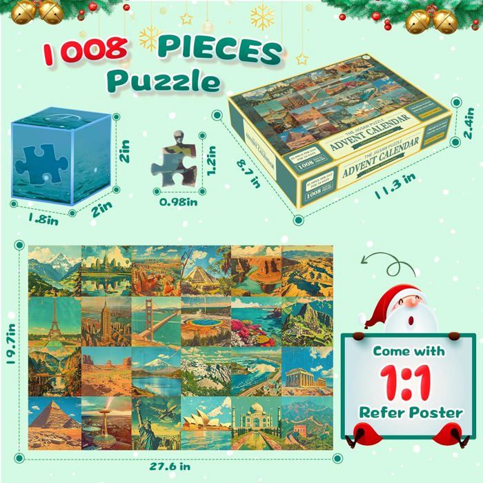 Cadeau Noël Familial Calendrier De L'avent Calendrier De L'Avent 2025 Puzzle Pour Enfants Et Adultes U2013 Calendrier De Noël De 24 Jours Avec Puzzle Jigsaw De 1008 Pièces, Cadeaux De Noël Pour Garçons, Filles, Femmes Puzzle éducatif Enfants Adultes Noël Ce calendrier de l'Avent unique contient 1008 pièces numérotées au dos, réparties dans 24 boîtes à ouvrir du 1er au décembre. Grâce à la numérotation et l'affiche 1:1 (70x50 cm), l'assemblage est accessible à tous Calendrier Puzzle Calendrier Avent Legami 2024 Calendrier De L'Avent Puzzle 1008 Pièces - Chats De Noël - 24 Boîtes - Activité Familiale 2024 Calendrier De L'avent 2025 Calendrier De Lavent Garcon 🎁【Excellents cadeaux de Noël】notre ensemble de puzzles de Noël est livré dans une belle boîte de couleur,ce qui en fait le cadeau de Noël parfait pour les enfants,les adolescents et les adultes;le calendrier de l'Avent 2025 offre une expérience unique et passionnante qui ravira vos proches,vos amis et votre famille. KXXK Puzzle Crèche De L'Avent | Calendrier De L'Avent 2023,Puzzle De L... Embarquez pour un voyage de Noël inoubliable avec ce calendrier de l'Avent 2025. 🎁【Défiant et éducatif】Avec 1008 pièces, ce puzzle offre un défi satisfaisant pour les enfants,Les amateurs de puzzles,Les puzzles de Noël favorisent la mémoire,la résolution de problèmes,la reconnaissance des formes et les compétences motrices fines,Libérez la joie de la période de Noël avec ce puzzle unique du calendrier de l'Avent. Après avoir terminé les 24 puzzles, le puzzle de Noël peut être encadré et accroché au mur,ajoute une touche de Noël à votre chambre et diffuse de la bonne humeur. 🎁【Haute qualité Calendrier de l'Avent puzzle】fabriqué en carton recyclable et une surface mate de qualité supérieure,ce puzzle offre une expérience anti-éblouissement,durable et résistante aux couleurs,chaque pièce de puzzle est découpée avec précision pour garantir un ajustement parfait entre les pièces,les bords sont exempts de bavures et garantissent une construction de puzzle sans couture.