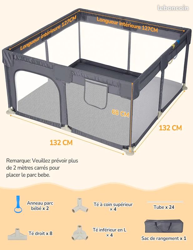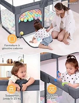 Parc pour bébé avec 2 portes rouge tissu oxford Hauteur scientifique : les murs de 68 cm de haut bloquent efficacement l'escalade sans restreindre la vue de l'enfant - Idéal pour les premiers essais de marche. Parc Bebe 150x150 Homewell Parc Bébé 160 X 120 Cm Avec Sac De Rangement, Playpes, Parc Parc Bebe Pliable Transparence totale : les zones en maille hautement respirante permettent une observation illimitée de l'enfant pendant le jeu ou le sommeil. Parc bébé avec 2 portes - HOMEWELL - YISHANG - Noir - Mixte - Tissu... Caractéristiques · Couleur : gris clair · Matériau : tissu Oxford 210D, maille, fer · Dimensions totales : 190 x 150 x 70 cm (l x P x H) · EAN : 8720286444276 · SKU... Sécurité optimale : les parois de 68 cm de haut avec rembourrage absorbant les chocs à tous les coins protègent votre bébé des chocs et des chutes. Adhérence universelle : la technologie spéciale de ventouse garantit la stabilité sur tous les sols, même en cas de jeu vif. Accessoires pratiques : comprend un tapis de sol souple pour absorber les chocs et un sac de transport compact pour un rangement peu encombrant. Caractéristiques principales en détail : Protection complète du rembourrage : les couches épaisses de protection contre les chocs encadrent chaque coin et minimisent les risques de blessures en cas de choc. Utilisation quotidienne pour les familles : Que vous soyez court dans la cuisine ou que le bébé commence à faire ses premiers pas dans le salon, ce parc offre un espace sûr où votre enfant peut explorer librement. Résumé : notre parc de sécurité haut de gamme combine des tissus Oxford 210D robustes, un rembourrage renforcé et des éléments de design intelligents pour créer une aire de jeu protégée qui offre aux parents un maximum de sérénité.