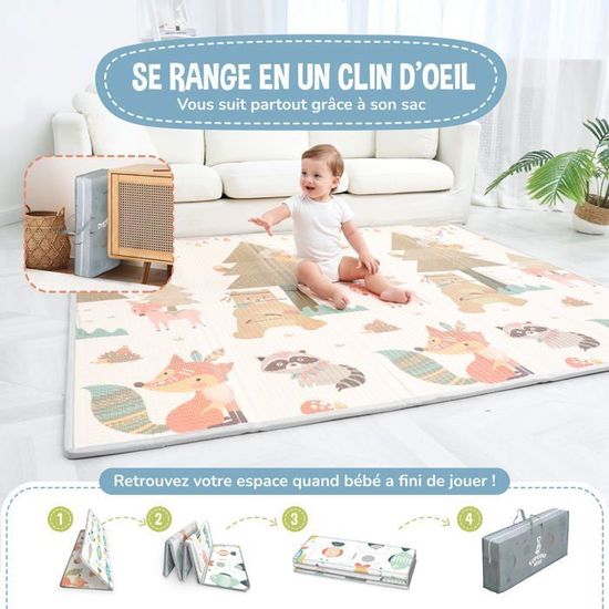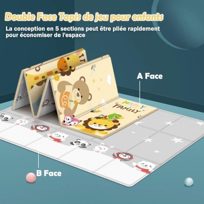 Ce tapis de jeu est parfait pour que vos puissent en profiter sur le sol ou sur le balcon. Boostez la croissance visuelle et cognitive le tapis affiche des couleurs douces qui sont apaisantes pour les yeux et une variété de couleurs qui plaisent à l'enfant. Il a un design doux et coloré qui stimule leurs sens et exerce leur coordination corporelle. Le tapis de jeu en mousse extra large est un design imperméable de surface, peu importe les résidus alimentaires, les taches de lait ou d'urine, il suffit d'utiliser une lingette avec un chiffon doux et humide ✽Croissance saine et confort : ce tapis rampant crée un espace chaleureux et confortable où vos en fant peuvent s'amuser et apprendre. Taille (environ): déplié 180*100*0., 5cm/70*40*0., 2 pouces plié 50., 8*35., 56*10., 16cm/20*14*4 pouces Matériel: LDPE Liste de colisage: 1 pièces * tapis de jeu pour Remarques: 1., En raison des différents effets d'affichage et d'éclairage, la couleur réelle du produit peut être légèrement différente de la couleur affichée sur l'image., 2., En raison de la mesure manuelle, veuillez permettre un écart de mesure de 1 à 3 cm. Rrlihjgu Tapis De Jeu pour Nt Bebe Double Face Appliquer À L'intérieur Et L'extérieur Non Toxique 180x100cm Tapis De Sol XXL en Mousse Epais Pliable... Ce tapis permet à votre enfant de vivre une expérience confortable et douce. ✽Stimule les capacités visuelles et cognitives : le tapis offre des couleurs douces qui sont douces pour les yeux et une gamme de couleurs qui attirent la curiosité de l'enfant. Tapis Double Face Pliable OUNUO Tapis De Jeu Pour Bébé - Double Face -Tapis De Sol XXL En Ousse Tapis Double Face Bébé Taille (environ): déplié 180*100*0., 5cm/70*40*0., 2 pouces plié 50., 8*35., 56*10., 16cm/20*14*4 pouces , Matériel: LDPE Zone de confort pour les ce tapis rampant transforme n'importe quel sol en un espace confortable et doux pour vos . Pour cette raison, vous pouvez l'utiliser dans divers endroits comme le salon, la chambre, le parc ou le balcon. ✽Outil polyvalent : ce tapis rampant pour en fant a un design pliable qui vous permet de le facilement et de prendre peu de place. Plus de motifs d'animaux initient votre enfant à différents animaux et stimulent son imagination. ✽Hygiénique et pratique : ce tapis rampant est pratique et hygiénique pour votre enfant, car il n'a pas peur des éclaboussures de nourriture ou de boissons. Spécification: Nom : tapis de jeu pour . Développer les compétences visuelles et cognitives le tapis a des couleurs douces qui sont agréables pour les yeux et un arc-en-de teintes qui captent l'intérêt de l'enfant. Cela améliore leur coordination corporelle et leur croissance saine. Description du produit Matériau en mousse ce tapis est confortable et confortable pour votre enfant car il est fabriqué en mousse douce et chaude. Il prend soin de la peau de votre enfant et ne provoque pas d'irritation pendant qu'il rampe et joue. Le tapis de jeu est durable et sûr pour une utilisation en intérieur et en extérieur. Tapis de jeu pour bébé, 150 x 180 cm, pliable, extra large, épais, imperméable et double face en mousse, tapis de sol pour bébés et tout-petits, rangement facile et voyage (150 x Il empêche la peau de votre enfant de s'irriter ou de se blesser pendant qu'il rampe et joue.