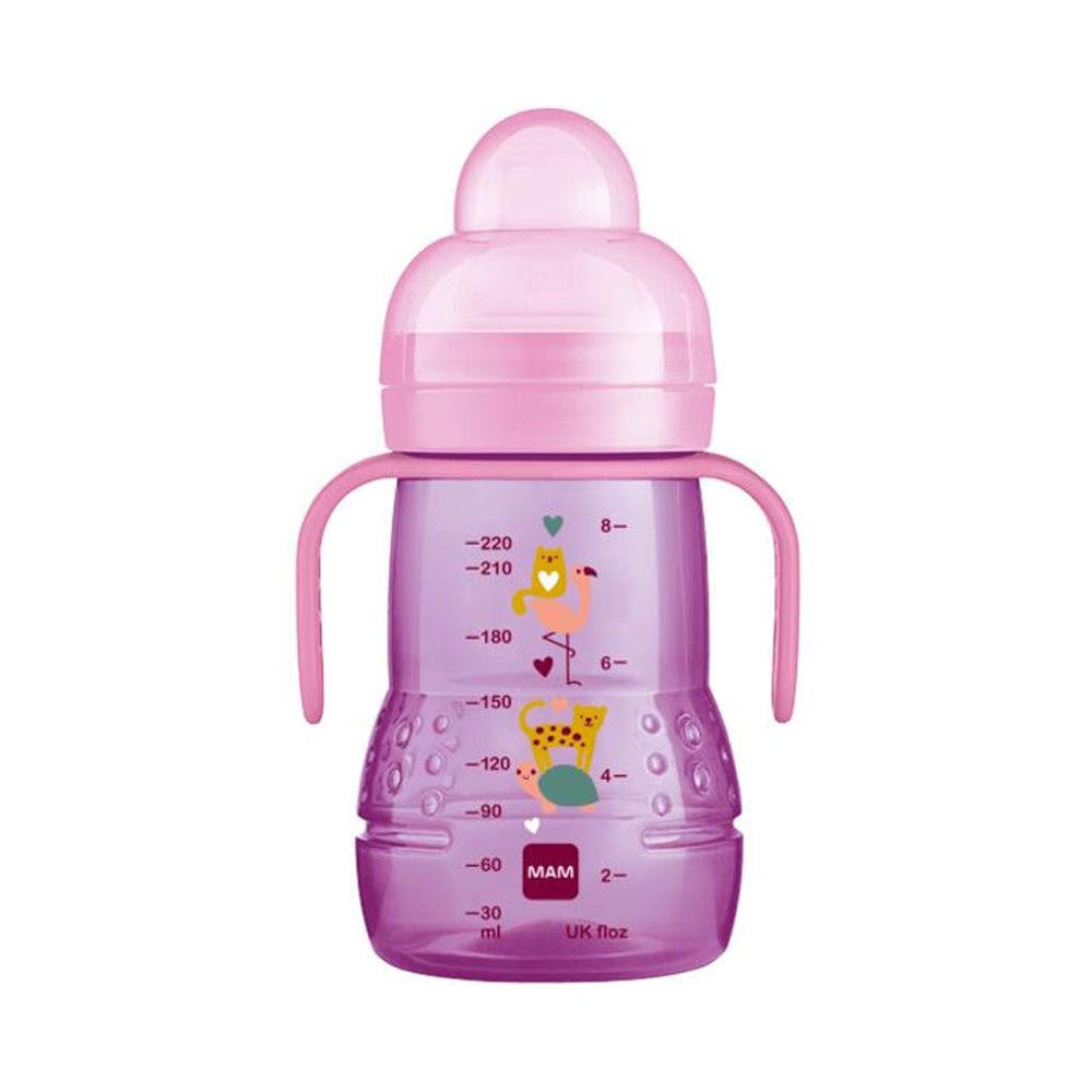 Existe en 220 ml. Tasse d'apprentissage. Dès 6 mois. ✓ Bec évolutif avec valve optionnelle, pour un débit contrôlé ✓ Poignées ergonomiques... Bébé contrôle lui-même le débit d'écoulement. Poignées ergonomiques – Grâce à sa forme cintrée et à ses poignées antidérapantes, ce biberon de transition MAM est facile à prendre en main par bébé. Bébé Apprend à Boire Seul Sans Renverser Biberon Transition Bébé Biberon De Transition MAM 4+ Mois 220 Ml Rose | Apprentissage Autonomie Bébé Tétine Et Bec Anti-fuite La Nuit Antifuites – Le bec antifuites empêche le liquide de couler, même la tête en bas. Mam, expert des biberons et tétines propose depuis 1976 La marque développe des produits designs et innovants pour se concentrer sur le bien-être des bébés. En véritable précurseur, la marque fut la première a inventer le biberon anti-coliques avec tétine à tête plate. Forte de son savoir-faire, Mam créé des biberons et tétines uniques comme vous ! Les points forts Le savoir... Évolutif – Ce biberon de transition MAM facilite une transition aisée du sein ou du biberon au verre en deux étapes grâce à sa tétine ultra-douce débit 3 et son bec antifuites. MAM Biberon de transition nuit 220 ml 4+ mois Bleu
