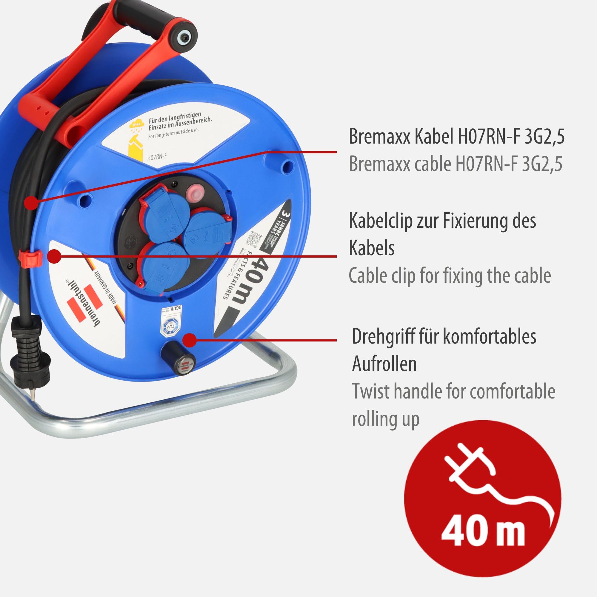 Automatique Bobines De Câble D'extension Rétractable De 50m,Câbles D'extension Enrouleur Electrique Tambour en acier galvanisé et inoxydable, l'enrouleur de câble Garant S IP44 de 25m est conçu pour un transport facile et sécurisé. Il est équipé d'une poignée de transport innovante Cablepilot® qui assure un guidage parfait du câble Enrouleur Professionnel Chantier Brennenstuhl Enrouleur De Câble Garant ST + Bretec H05VV-F 3G1,5 *CH Cable 3g1.5 Pour une utilisation constante en extérieur, IP 44., Tambour en acier, galvanisé, inoxydable avec un cadre de transport particulièrement stable. Avec poignée rotative pour un enroulement confortable. Brennenstuhl Garant V2 Enrouleur de câble Noir 25 m Fabriqué en... Poignée de transport innovante Cablepilot pour un guidage parfait du câble. Le câble RN est très robuste, résistant aux hydrocarbures et tout particulièrement adapté à un usage professionnel. Longueur du câble: 25 m Câble: H05RR-F 3G1,5