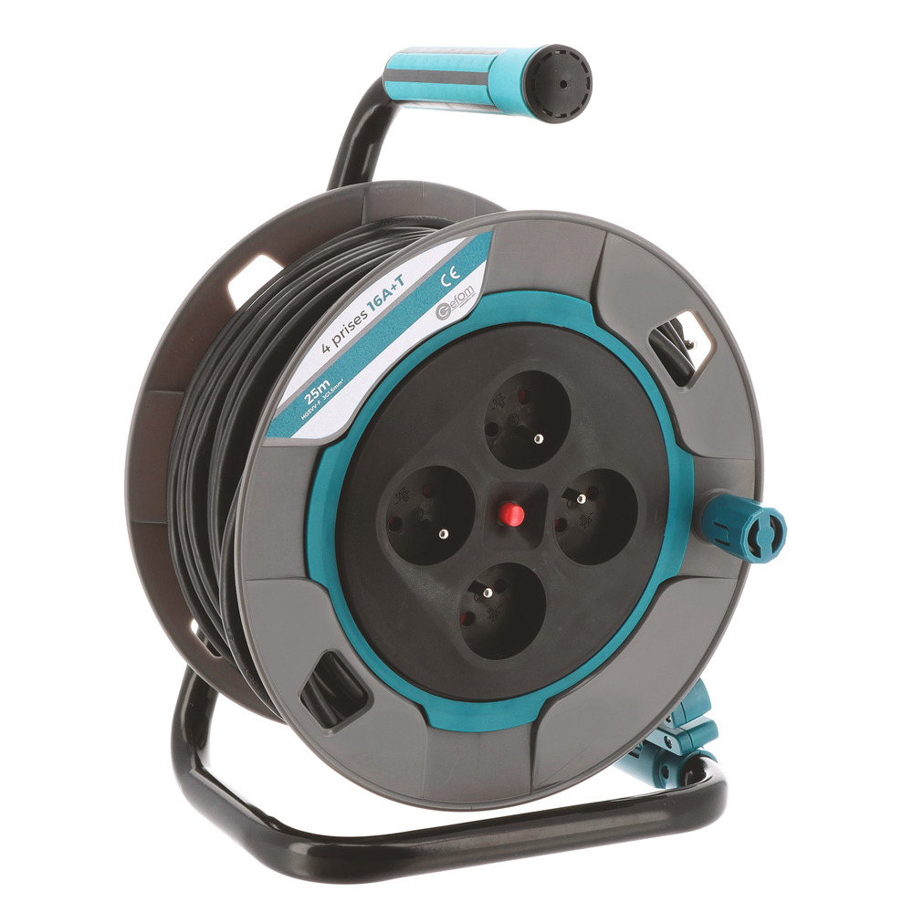 Quatre prises type E avec terre offrent connectivité simultanée de plusieurs appareils en toute sécurité CHACON Enrouleur ménager 10m 4 prises 16 A 3x1,5mm² avec poignée... STRUCTURE SOLIDE - Le boîtier en polypropylène (PP) et la structure métallique garantissent robustesse et stabilité dans des environnements difficiles. Grâce à son indice IP44, il résiste à l’humidité et à la poussière - idéal comme rallonge électrique ou enrouleur chantier. Prolongateur Extérieur Robuste Prise Terre Ip44 Enrouleur Câble MASKO 20m - Rallonge Extérieur IP44, 3000W Déroulé, Poignée Transport | Pour Jardin, Bricolage, Chantier Enrouleur Professionnel Bricolage Rallonge électrique Pour Jardin Et Chantier Idéal pour un usage jardin, garage, atelier ou chantier, il permet de connecter plusieurs équipements simultanément: tondeuse, pompe, éclairage ou machines de bricolage. EXEN Enrouleur Électrique 20 m 4 Prises Type E avec Terre - Enrouleur Ménager et Rallonge Électrique 3×2,5 mm² 230V IP44 3300W - Enrouleur de Câble d'Exteriéur pour Jardin, Chantier, Garage Enrouleur électrique extérieur avec 4 prises et 20 mètres de câble pour alimentation à l'extérieur. Comme rallonge électrique jardin ou chantier, sa longueur permet de couvrir de larges espaces - garage, terrasse ou zone de travail. En tant que enrouleur câble idéal pour prolongateur externe, il vous offre une solution de qualité pour prolonger alimentation électrique sans compromis sur la sécurité ou la longévité UTILISATION PRATIQUE & RANGEMENT SIMPLE DU CÂBLE - Grâce à sa conception ingénieuse, cet enrouleur permet un déroulement et un enroulement du câble rapide et sans effort. ENROULEUR DE CÂBLE EXTÉRIEUR ROBUSTE - Cet enrouleur de câble permet une alimentation fiable jusque 3300 W sur travaux extérieurs, atelier ou jardin. Longueur de 20 m et section câble 3×2,5 mm² rendent ce produit indispensable pour prolonger câble jusqu’à zone éloignée. Rallonge électrique ménager avec terre, ZENITECH, L.5 m Avec une protection IP44, cet enrouleur est conçu pour résister aux éclaboussures d'eau et aux conditions météorologiques difficiles. Une fois l’usage terminé, ce rallonge électrique bębnowy se range facilement - parfait pour jardin, garage ou chantier nroulur élctriqu 4 priss 16 A - IP20 - câbl H05VV-F 3G 2,5 mm² 50