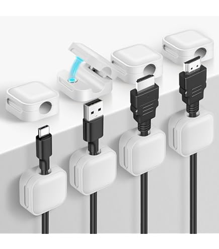 Clip Magnétique Câble USB HDMI 6 Pack Clips Câble, Organisateur De Câbles Magnétique Auto-adhésif Support De Câbles Pour Bureau, Table De Nuit, Câbles De Chargement, HDMI, USB, Audio, Blanc Rangement Câbles Bureau SJACXANM Magnetic Cable Organizer, 6pcs Clip Cable, Self Adhesive Cable Travail pour tous les types de câbles: Les accroche cable adhésif pour bureau sont compatibles avec les câbles d'un diamètre de 7 mm. Organisateur cable pour la plupart des câbles, qu'ils soient épais ou fins, comme les câbles d'alimentation PC, les câbles HDMI, les câbles TV, les câbles réseau, les câbles de charge USB, les câbles... 【Organisation efficace】 Le clip câble magnétique permet de maintenir les câbles bien en place, tout en offrant une solution pratique et élégante pour éviter l’enchevêtrement des fils. Ce clip câble magnétique est idéal pour organiser votre espace de travail à la maison ou au bureau. 【Pratique et polyvalent】 L’organisateur de câble avec auto-adhésifs est facile à installer sur différentes surfaces. Nom du produit : Organisateur Câble Magnetique Matériau du produit : Plastique Couleur du produit : Blanc Spécifications du produit : 11., 60 × 7., 00 × 2., 10 Poids du produit : 30G L'ensemble comprend : 6 * Organisateur Câble Magnetique 【Solution durable】 Le clip magnétique pour câble est conçu pour être réutilisable et durable. Grâce à son adhésivité, il permet de maintenir les câbles en place sans endommager les surfaces et de les repositionner facilement. Ce système de rangement est réutilisable et garantit une efficacité à long terme, parfait pour une utilisation quotidienne. Organisateur de câbles - Blue - 4 pièces - Réutilisables - Portable...