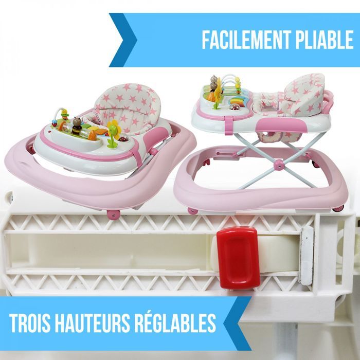 🚫【Roues silencieuses qui protègent les sols】Équipé de roues pivotantes à 360°, ce walker garantit une conduite stable sans bruit ni rayure, idéal pour un usage quotidien à l’intérieur sans abîmer vos sols. Plateau Activités Jouets Musique Trotteur Pliable Pour Bébé Hauteur Réglable 62*68*36 81cm Plastique Vert QUIIENCLEE Puériculture Siège Réglable Confortable Offrez à votre bébé un moyen ludique et sécurisé de découvrir la marche avec ce trotteur bébé pliable équipé de roues silencieuses. Trotteur pliable facile à ranger et à transporter]Ce foldable baby walker with mute wheels se plie en quelques secondes pour un rangement rapide. Léger et compact, il s'adapte parfaitement aux petits espaces ou aux voyages, avec des roues silencieuses qui assurent un déplacement fluide sur parquet ou moquette 👶【Trotteur pliable facile à ranger et à transporter】Ce foldable baby walker with mute wheels se plie en quelques secondes pour un rangement rapide. Léger et compact, il s'adapte parfaitement aux petits espaces ou aux voyages, avec des roues silencieuses qui assurent un déplacement fluide sur parquet ou moquette. Trotteur 4 en 1 pour Bébé avec Hauteur Réglable sur 3 Niveaux Volant de Siège Rembourré et Boîte à Musique pour 6-18 Mois Bleu. special price 68,39 € special... Les roues pivotantes à 360° permettent une mobilité fluide sur toutes les surfaces intérieures, sans rayer les sols. Sa structure ronde anti-basculement, associée à un siège ergonomique et respirant, offre un confort optimal et une sécurité renforcée. Fabriqué en plastique robuste, le baby walker empêche les basculements et protège à 360°, pour permettre aux bébés d'explorer en toute sécurité. COIL Trotteur eois avec roues en caoutchouc72 - Puériculture Le foldable baby walker with mute wheels se plie facilement pour être rangé dans un placard ou dans le coffre d’une voiture, idéal pour les déplacements. Le plateau détachable peut aussi servir de table à goûter, pour le jeu ou les repas.