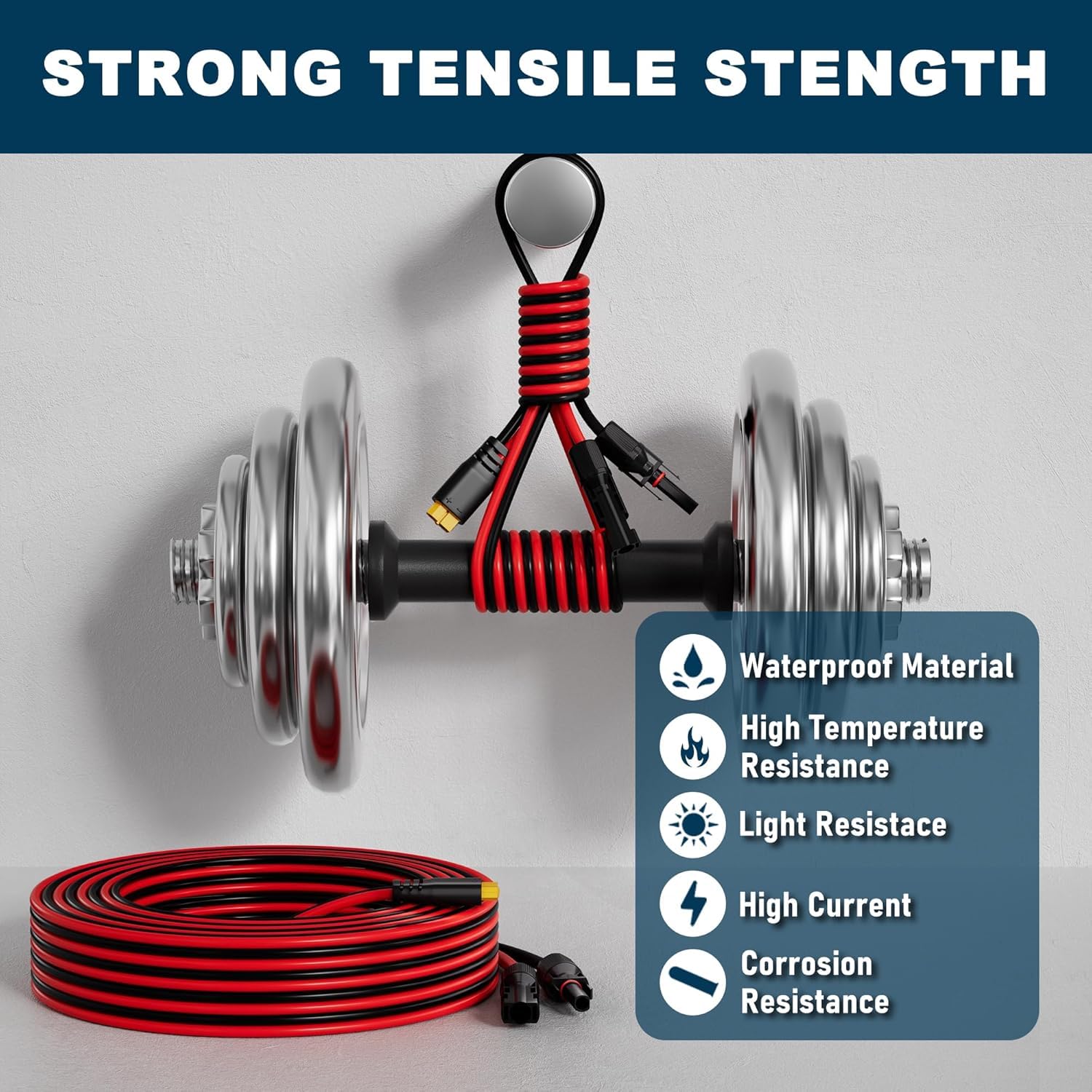 Fil Cuivre étamé -40°C à 200°C PEBA Cable Solaire 4mm²,Câble D'extension Pour Panneau Solaire,Câble D Câble Cuivre étamé 3m ELECTOP Connecteur solaire 10 AWG vers XT60 - Câble d Câble de charge solaire EcoFlow | Connectez facilement vos panneaux solaires à une station électrique | Longueur 2,5 m, 3,5 m ou 5 m... *Compatibilité polyvalente : ce câble d'extension est parfait pour connecter des panneaux solaires à des générateurs solaires ou à des blocs de batterie, compatible avec une large gamme d'appareils équipés de ports ForXT60, y compris les marques populaires. * Design convivial : l'adaptateur forXT60 permet une connectivité facile, ce qui rend l'installation un jeu d'enfant tout en assurant une connexion sécurisée qui empêche les déconnexions accidentelles lors de l'utilisation. Caractéristiques : *Nom du produit : lignes photovoltaïques. * Résistance aux hautes températures : avec une plage de température de fonctionnement de -40 ℃ à 200 ℃, le matériau isolant durable assure sécurité et fonctionnalité même dans des conditions extrêmes. Taille : comme sur l'image., Couleur : voir photo. Compatibilité : pour connecter des panneaux solaires à des générateurs solaires ou à des blocs de batterie, ce câble d'extension fonctionne parfaitement avec les appareils équipés de ports de différentes marques. Design convivial : l'adaptateur assure une connectivité sans effort, fournissant une connexion sécurisée qui empêche les déconnexions accidentelles lors de l'utilisation. Câble de panneau solaire : matériau de haute qualité, le câble d'extension solaire vers XT60 est fabriqué en fil de cuivre étamé pur 10AWG/12AWG certifié UL2468, avec une faible résistance de contact et une capacité de charge haute tension et un courant élevé