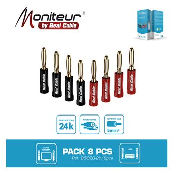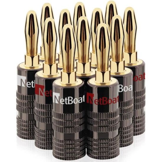 Paire de bornes pour enceinte haute fidélité, plaqué-or, pour fiche banane ou serrage sur conducteur diamètre 5.5 mm max, repères rouge/noir, diamètre 10.6 mm... Haute qualité : connecteurs plaqués or 24 carats en cuivre de haute qualité avec un anneau de couleur (noir/rouge) Compatible : parfaitement adapté pour câble haut-parleur, récepteur/amplificateur HIFI Kit Connexion HIFI Ampli 10x Fiches Bananes Haut De Gamme (blindées), Pour Câbles D'enceintes Fiche Banane Plate Or Kit de qualité professionnelle haut de gamme : 8x fiches bananes de haute qualité pour tous les câbles d'enceintes de 0,75 mm² à 6 mm² de section de câble Tertullus Lot de 4 fiches bananes extensibles haut de gae pour câble... conecto Fiches bananes haut de gamme, pour tous les câbles d'enceintes d'un diamètre maximum de 6 mm², 8 pièces avec anneau de couleur tout autour, rouge/noir, fiches plaquées or 24 carats, noir Conecto CC50643 Lot De 16 Fiches Banane Haut De Gamme 100 Cuivre Pour Tous Les