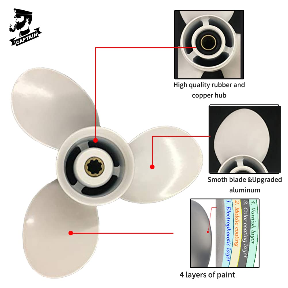 ETO--Hélice de moteur de bateau à 3 pales 10 cannelures dents rotation * Installation facile : construite avec des cannelures standard, l'hélice permet une installation ou un remplacement rapide et facile, améliorant l'efficacité de l'entretien et minimisant les temps d'arrêt lors de vos aventures en bateau. Hélice Aluminium 9 1/4 X 8-J1 Boatman Hélice De Bateau Hors-bord En Aluminium à 4 Pales Pour Moteurs Hélice Hors-bord Yamaha * Design efficace : avec une configuration à 3 pales, l'hélice offre une excellente propulsion et efficacité, optimisant les performances de votre moteur hors-bord dans diverses conditions d'eau pour une expérience de navigation plus fluide. Hélice En Alliage D'Aluminium Hélice 7 Dents Cannelées 3 Lames 6G1... RAN Hélice hors-bord de bateau Hélice hors-bord 9 1/4x11in 3 lames 14... Conception de propulsion efficace : la configuration à 3 lames améliore l'efficacité de la propulsion, offrant une expérience de navigation plus fluide dans diverses conditions d'eau. Caractéristiques : Nom de la pièce : hélice hors-bord. Installation facile : le design standard permet une installation ou un remplacement simples, minimisant les temps d'arrêt et vous gardant sur l'eau plus longtemps. * Construction : fabriquée en alliage d'aluminium résistant à la corrosion, cette hélice résiste aux environnements marins difficiles, offrant longévité et résistance à l'oxydation, ce qui aide à maintenir sa performance. Compatible avec les moteurs hors-bord : conçue spécifiquement pour les moteurs hors-bord de 9 HP à 15 CV, cette hélice offre une performance optimale dans diverses applications marines. Caractéristiques : * Compatibilité : conçue pour fonctionner sans problème avec des moteurs hors-bord allant de 9,9 HP à 15 CV, cette hélice est polyvalente et adaptée à une large gamme d'applications marines, pour garantir une performance fiable sur l'eau.
