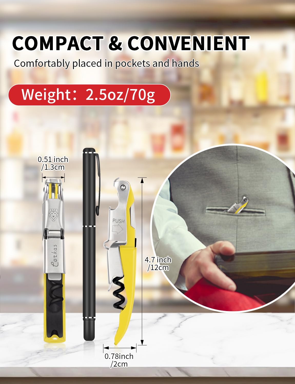 Le coffret cadeau exquis, le poli miroir et les lignes magistralement gravées respirent la qualité et le luxe. Aubeifou Couteau de Sommelier, Tire-Bouchon Professionnel, Tire Bouchon Le manche en bois doit être unique au monde et est très spécial pour vous ! Doté d'un pivot à double articulation et d'une mèche rainurée, ce tire-bouchon glisse à travers n'importe quel bouchon pour un débouchage en douceur et sans frustration. C'est un cadeau pratique et élégant qui sera chéri pendant des années. Il est bien caché mais facile à retirer, et être déchiqueté signifie également qu'il est plus sûr à utiliser. Idéal pour la fête des pères, la fête des mères, Noël, les cadeaux d'anniversaire pour les hommes, les femmes et les sommeliers, les barmans, les serveurs, tout amateur de vin. TIRE BOUCHON,G--Ouvre Bouteille et Coupe Papier, Tire Bouchon... CORKAS --- [Vous Propose un Nouveau Voyage Gustatif] En tant qu'amateur de vin, vous avez besoin d'un bon tire bouchon pour une meilleure expérience, car un bon ouvre-bouteille peut révéler le goût du propriétaire. Le Long Couteau à Papier Dentelé Enlève Tous les Types de Papier D'aluminium Rapidement et Clairement Le coupe-film long, incurvé et dentelé rend le retrait du film rapide et sans chaotique. ✅【LA SOLUTION TOUT-EN-UN POUR LES BOISSONS】 Le décapsuleur CORKAS va au-delà du vin ! CORKAS améliore votre service du vin à la maison ou au restaurant. Plus qu'un simple limonadier, c'est comme une œuvre d'art à offrir aux amis et à la famille. Tire Bouchon Pour Bouteille Cadeau Amateur Vin Tire-bouchon Professionnel CORKAS - En Bois | Ouvre-bouteille Double Ailette | Design élégant Et Fonctionnel Couteau Sommelier Idee Cadeau Homme ✅【Tire-bouchon sans frustration, CHAQUE FOIS】 Abandonnez le combat avec le tire-bouchon de serveur CORKAS ! Le manche ergonomique, plus long, en bois de rose de première qualité avec des bords lisses est spécialement conçu pour une utilisation confortable, réduisant la fatigue des mains pendant les longues heures de travail ou lors d'une utilisation fréquente à la maison. C'est pourquoi il a un grand avantage sur le ouvre bouteille traditionnel à charnière unique. Que vous soyez un professionnel ou un amateur de divertissement à domicile. ✅【Investir dans la qualité, sentir la différence CORKAS】 Nous croyons à la qualité et à l'artisanat. Du choix des matériaux à la conception, nous y avons mis beaucoup d'efforts ; nous faisons tout pour satisfaire nos clients. Remarque : chaque manche en bois est en bois naturel et les couleurs peuvent donc différer un peu des images. La finition en métal poli ajoute une touche de sophistication au service du vin. ✅【Un cadeau digne d'un amateur de vin】 Surprenez tous les amateurs de vin avec le décapsuleur CORKAS. Mais sa fonction est juste comme décrire. Idéal pour les serveurs occupés dans les restaurants ou pour une expérience vinicole sans frustration à la maison. Dot d'un pivot double articulation et d'une mche rainure, ce tire-bouchon glisse travers n'importe quel bouchon pour un dbouchage en douceur et sans ustration... Il ne mesure que 4,8 pouces de long et pèse 3,9 onces, ce qui lui confère une grande maniabilité.