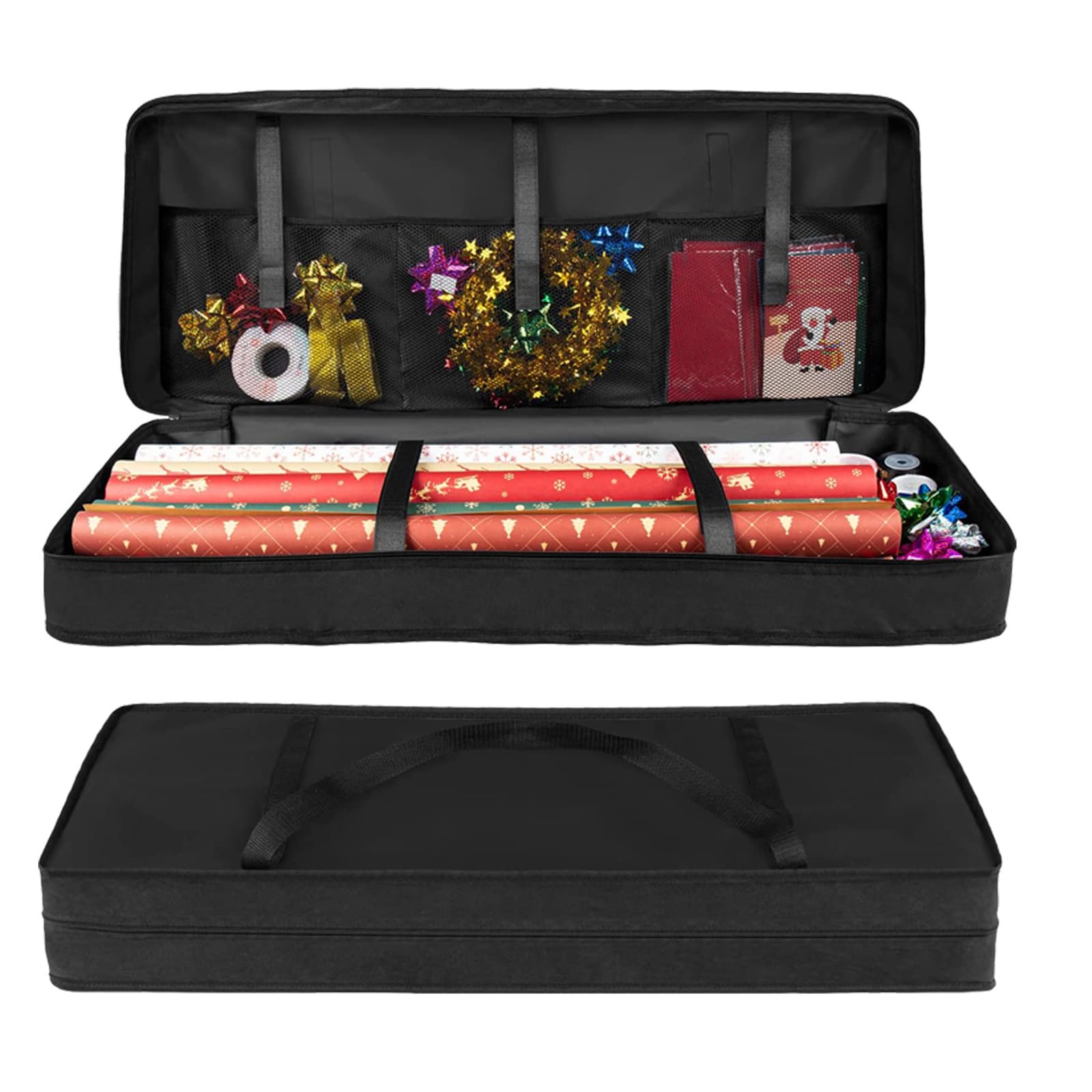 Matériau : PE + Polyester Rangement Rouleau Papier Cadeau Porte-cadeau Suspendu, Organisateur De Stockage De Crochet De Portes Organisateur Papier Grande capacité : Le Sac de Rangement pour Papier Cadeau mesure 104 x 36 x 16 cm. Contenu du colis 1 x Sac de Rangement pour Papier Cadeau L’Organisateur de Stockage de Papier Cadeau de Noël respecte l’environnement. Avec ses compartiments supplémentaires, il est parfait pour stocker papiers, cartes et rubans. Sac de Rangement en Tissu pour Papier Cadeau Noel - Rouleau 104*36*16 cm Organisateur de Papier Cadeau Étanche pour accessoires Dimensions : 104 x 36 x 16 cm Spécifications du produit Nom du produit : Sac de Rangement pour Papier Cadeau Écologique et sans odeur : Fabriqué en polyester de qualité, ce Sac de Rangement pour Papier Cadeau est sans odeur, réutilisable et durable. Tout est parfaitement organisé. Le sac de rangement en papier cadeau est résistant à la lumière, hydrofuge et indéchirable, il protège efficacement vos objets de valeur. [Espace de rangement généreux et protection]Les dimensions de 104x36x16cm font du sac de rangement pour papier d'emballage une solution spacieuse Grande capacité de stockage : peut contenir jusqu'à 24 rouleaux de papier cadeau de 101,6 cm, gardant votre collection d'emballage cadeau organisée et... Organisateur de Stockage de Papier Cadeau de Noël spacieux Rangement Papier Cadeau pour Cartes pratique et compact Couleurs : Noir / Rouge avec motif flocon Sac de Rangement pour Papier Cadeau 104x 36x16 cm, Organisateur de Stockage de Papier Cadeau de Noël en PE, Organisateur de Papier Cadeau Étanche, Rangement Papier Cadeau pour Cartes Sac de Rangement pour Papier Cadeau élégant avec fenêtre transparente