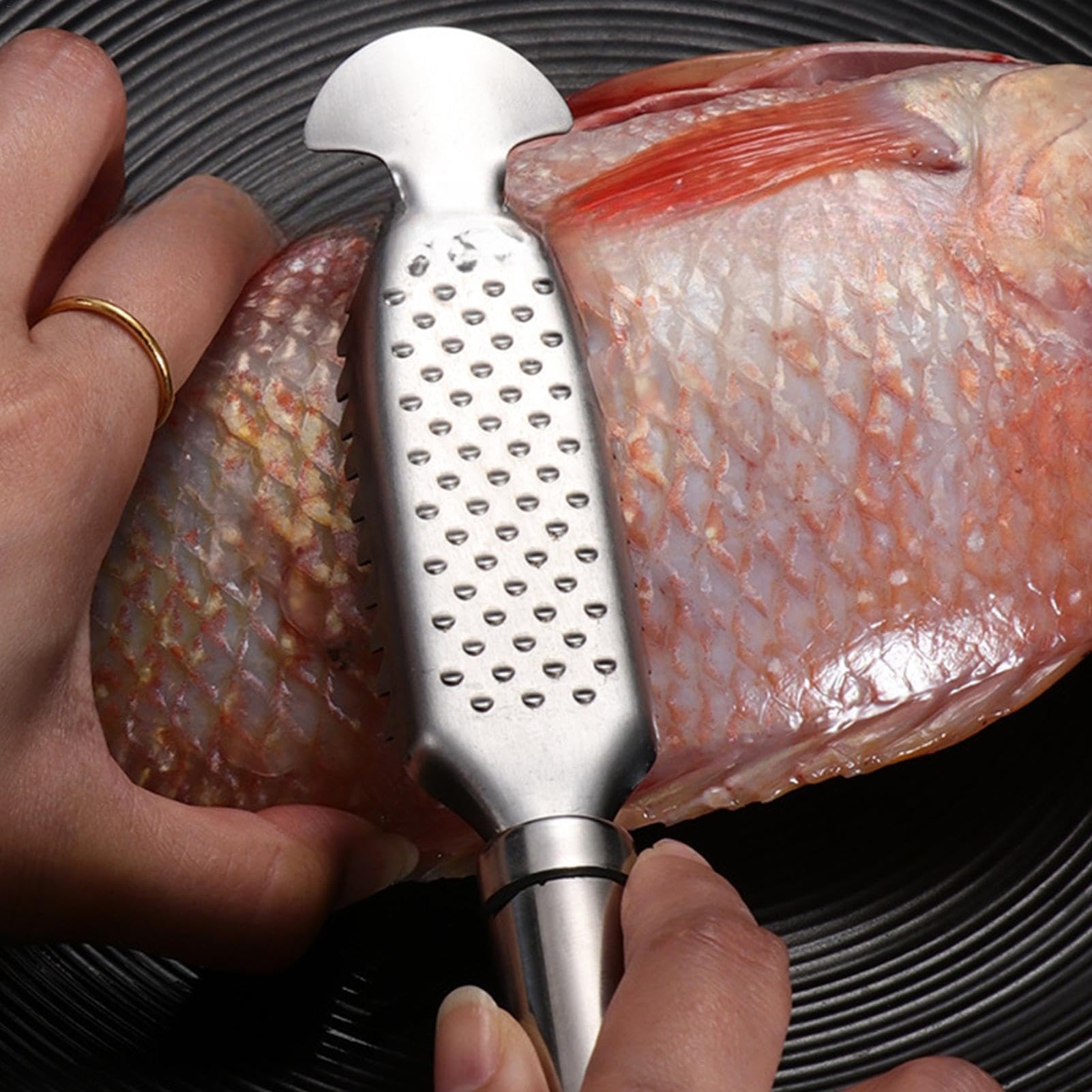 Détartreur De Poisson, Détartreur De Poisson En Acier Inoxydable 304 Detartreur Pour Poisson 285 4 Cm Fei Yu 79026243 Détartrage efficace:Notre détartreur à poisson est doté de bords dentelés à deux rangées. Accessoire Pêcheur Cuisine Facile Nettoyage Écaille De Poisson En Acier Inoxydable,Grattoir Poisson Longueur 23cm Facile à Utiliser Matériau:L'outil de détartrage de poisson est fabriqué en acier inoxydable 304 de haute qualité,sans danger pour les aliments,il est robuste,durable, antirouille, léger,à longue durée de vie Un Gros Plan D'une écaille De Poisson Avec Un Motif Métallique D... Cet écailleur en acier inoxydable 304 fait le job en quelques secondes, sans éclaboussures grâce à ses rainures qui captent les écailles. Il marche sur tous... Nettoyage et stockage:après avoir gratté les écailles,vous pouvez utiliser un détergent pour nettoyer le dissolvant de détartreur de poisson. La conception en dents de scie rend ce détartreur à poisson très efficace et simple à gratter. peut être accroché à un crochet au mur,ce qui permet de gagner de la place Notre ecailleur poisson Fabriqué en acier inoxydable de haute qualité,ce détartreur est conçu pour résister à l'épreuve du temps et à une utilisation régulière Le détartreur à poisson vous permet de retirer facilement les écailles rapidement,il vous fait gagner beaucoup de temps dans le processus de préparation Matériau:acier inoxydable, Couleur:Argent , Dimension:23*3., 5 cm/9*1., 37 pouces, Paquet:sac en PVC