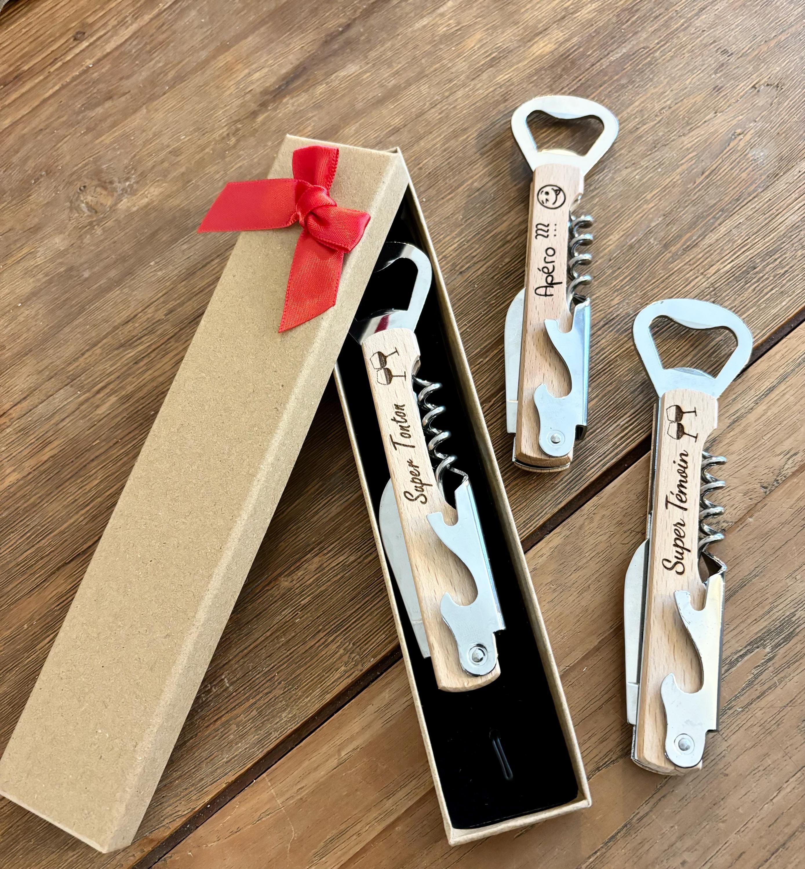Veux tu etre mon Temoin,Demande Temoin Mariage,Décapsuleur,Cadeau Temoin Mariage,Cadeau pour Témoin Mariage,Annonce Mariage,Cadeau de Témoin,Demande Temoin Mariage Homme,Cadeau Temoin Mariage Homme Un accessoire utile qui se transforme en souvenir précieux pour vos proches Décapsuleur 3 En 1 Bois Cadeau Décapsuleur Personnalisé – Demande Témoin De Mariage Original Annonce Marraine 👉 Idéal pour les demandes de témoin, EVJF, EVG, mariages et cadeaux personnalisés, cet ouvre-bouteille en bois naturel est à la fois élégant et durable. Personnalisez-le avec la gravure du prénom de votre choix, pour en faire un cadeau unique et mémorable. Idéal pour remercier vos témoins de mariage de manière originale et significative, ce décapsuleur personnalisé sera un souvenir précieux et pratique pour chaque occasion DESIGN ÉLÉGANT: Décapsuleur en bois naturel avec gravure personnalisée 'Veux-tu être mon témoin?' pour une demande originale et mémorable, une demande... FONCTIONNEL: Combine l'aspect décoratif avec une utilité pratique comme décapsuleur pour les bouteilles DESIGN ÉLÉGANT: Décapsuleur en bois naturel avec gravure personnalisée 'Veux-tu être mon témoin?' pour une demande originale et mémorable, une demande témoin de mariage original. Idéal pour les demandes de témoin, EVJF, EVG, mariages et cadeaux personnalisés, cet ouvre-bouteille en bois naturel est à la fois élégant et durable. À la fois utile et symbolique, il combine trois fonctions indispensables : Ouvre-bouteille pour vos bières, Tire-bouchon pour vos vins, Petit couteau pour découper la capsule du goulot des bouteilles de vin. CADEAU UNIQUE: Accessoire de mariage parfait pour faire votre demande de témoin de manière créative et personnelle Faites votre demande de témoin d’une manière pratique et émouvante avec ce décapsuleur 3 en 1 en bois gravé portant l’inscription « Veux-tu être mon témoin ? ».