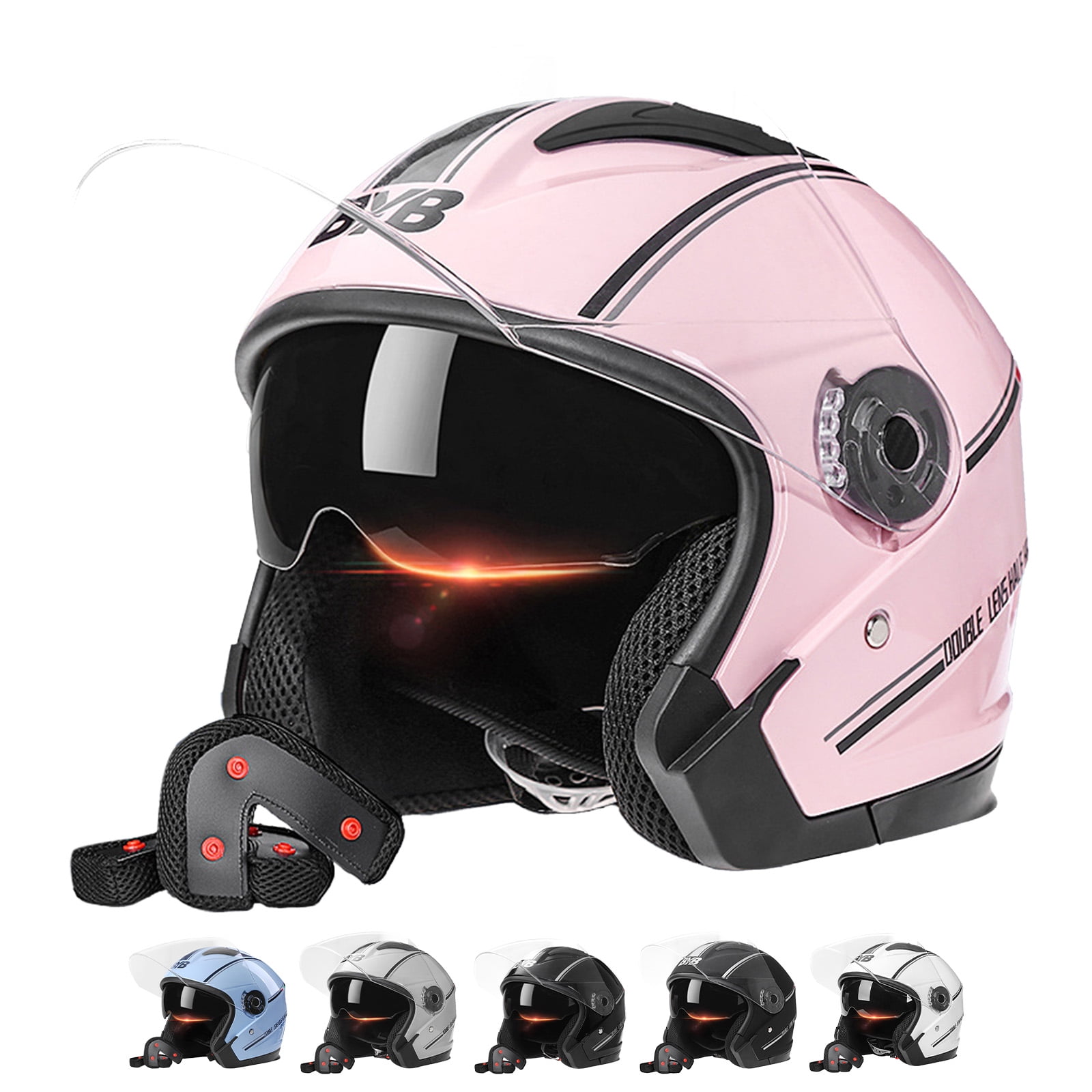Casque Trotinette Adulte Demi-jet Demi-casque De Moto, Demi-casque Ouvert Avec Casque Demi-poitrine DOT ECE Casque de moto à visage ouvert, style jet, demi-casque de moto pour Casque de moto rétro approuvé DOT ouvert au visage pour cafe r de chopper livraison gratuite 34... Certification de sécurité: Le fait que le casque réponde aux normes de sécurité DOT FMVSS-218 / ECE R2205 signifie pour vous et vos proches: il peut protéger votre tête en cas d'accident! C'est un outil de sécurité très important dans votre vie en plein air. Matériau: la coque de conception ouverte offre une protection, combinée à un large champ de vision pour éviter la claustrophobie, et le casque ABS a une résistance élevée aux chocs. Aérodynamique: Il y a des trous de ventilation sur le dessus du casque et des trous de ventilation à la queue, qui peuvent assurer la ventilation et le confort à l'intérieur du casque. Doublure confortable + conception à double lentille: une doublure intérieure douce et confortable peut empêcher une odeur particulière. Les lentilles de protection solaire intégrées peuvent protéger efficacement le visage des irritations causées par la lumière du soleil, la pluie et les éclaboussures de la route. Applicabilité: convient aux adultes, aux jeunes, aux hommes, aux motos pour femmes, aux motos, aux motards, aux machettes, aux scooters, aux jets, aux pilotes, aux casques de voyage. Alliez confort moderne et sécurité certifiée avec notre casque moto jet. Conçu pour les amateurs de deux-roues urbains et les passionnés de moto, ce casque combine une coque légère en ABS haute résistance, une double visière rabattable anti-UV, et un intérieur doux, respirant et lavable