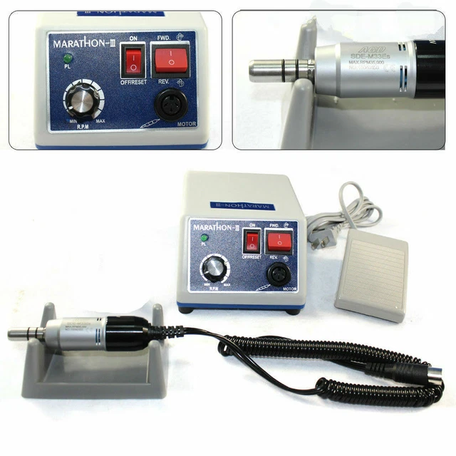 Dental Lab Marathon Micromotor - Le Comptoir Dentaire Vente de Portable Marathon Micro moteur N7S avec Pièce à Main dentaire S04 en ligne Pièce à Main Micromoteur Marathon Micro Moteur Pièce à Main Polissage Laboratoire Dentaire 35k/45k RPM MZ Micro-moteur Laboratoire Vitesse Variable Micro - moteurs 90 + 102 Modèle de base, Design Mini compact 0 ~ 35000 tr / min, petit moteur standard de brosse de carbone de vibration Système de vitesse continue Capacité de tourner à droite et à gauche Interrupteur marche / arrêt En tant que modèle de base en forte progression, la chaleur et les vibrations sont uniformément minimisées En raison de la disposition stable du circuit, il peut être utilisé pendant une longue période. ✭✭Modèle de base, Design Mini compact;0 ~ 35000 tr / min, petit moteur standard de brosse de carbone de vibration. DENTAIRE 35K PIÈCE Main Micromoteur Micro-Moteur à Marathon Technique Meilleur EUR 69,00... Bur taille: 2,35 mm Tension d'alimentation: 220V / 240V / 50hz ± 10% Le paquet contient 1 poignée haute vitesse 35000 tr / min 1 interrupteur à pédale 1 boîte de contrôle maître 220V 1 clé 1 manuel d'exploitation en anglais 1 gratuit adaptateur de prise (si nécessaire) ✭✭Système de vitesse continue,Capacité de tourner à droite et à gauche,Interrupteur marche / arrêt. ✭✭Commande de commutation dans le sens horaire et inverse ou entre manuel et pédale. ✭✭Procédez comme suit: appuyez sur le bouton on ou OFF pour basculer entre Bur Run.