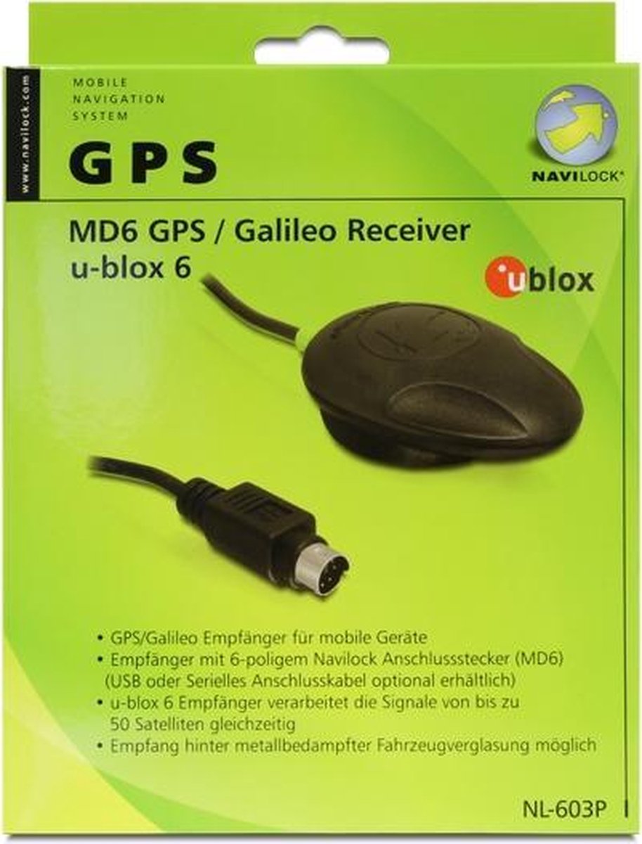 NAVILOCK NL-603P MD6 série récepteur GPS u-blox 6 1,5 m Chipset U-blox 6 Navilock 61840 Module Récepteur GPS USB 50 Canaux Navigation Logicielle PC Il fournira un port série virtuel sur votre appareil. Réf. 61840. Navilock Récepteur GPS USB 2.0 NL-602U u-blox 6 1,5 m. Le récepteur GPS USB... Chipset à haute performance U-blox 6 GPS SuperSense · Traite simultanément les signaux de 50 satellites au maximum · Classe de protection IPX6 Navilock Produkte 61840 Navilock NL-602U USB 2.0 GPS Empfänger u-blox 6... Une navigation est possible en liaison avec un ordinateur portable et le logiciel de navigation adapté 0 avec chipset u-blox 6 SuperSense possède une antenne active intégrée