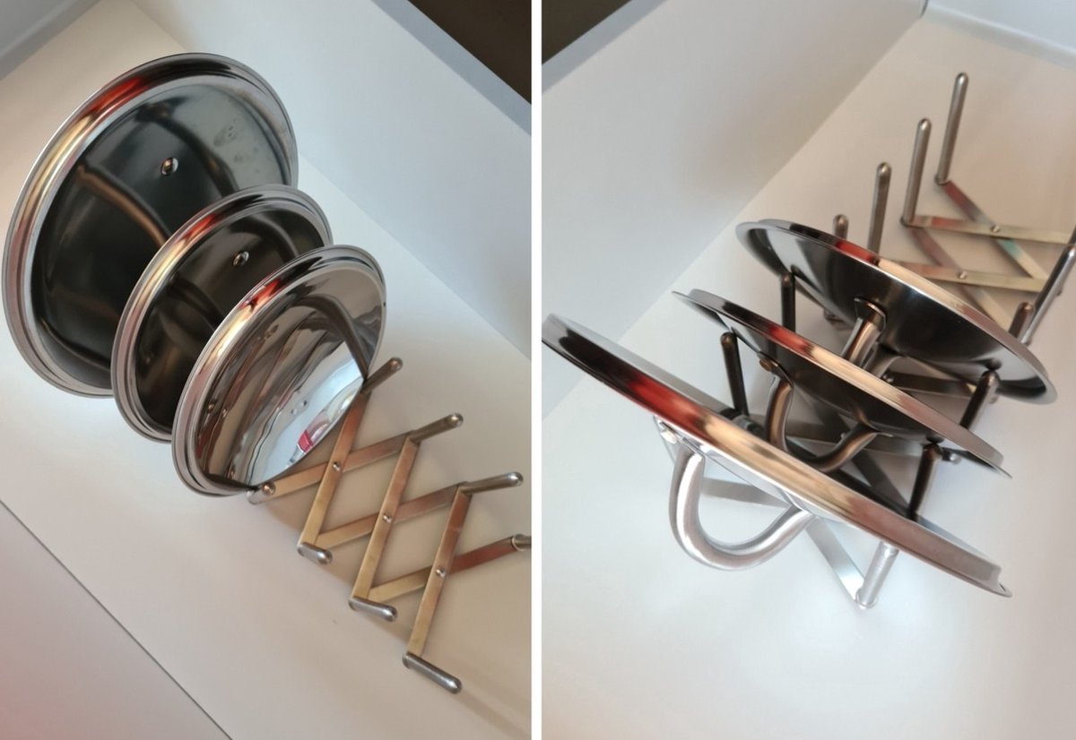 Ce support peut supporter jusqu'à 5 kg. Optimisez l'espace mural pour ranger couvercles, planches à découper, casseroles, torchons, dessous de plat, ustensiles... Construction durable en acier inoxydable : fabriqué en acier inoxydable de haute qualité, ce support de couvercle de casserole est résistant à la rouille et conçu pour résister à un usage quotidien tout en améliorant l'esthétique moderne de votre cuisine 2 Pièces Crochets Muraux Sans Perçage Acier Inoxydable Pour Cuisine Lot Support mural en acier inoxydable pour couvercle de casserole