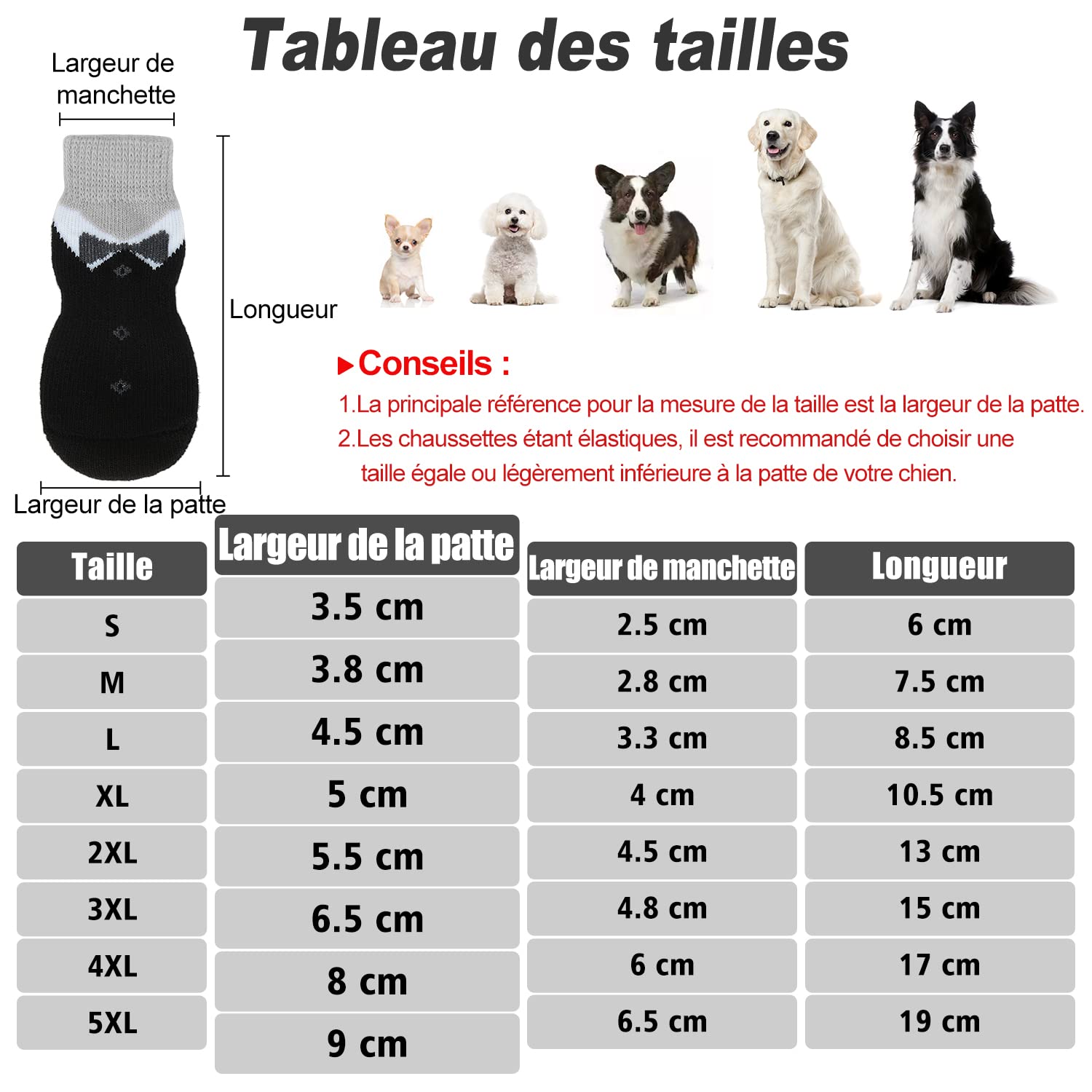 Les chaussettes motifs des Fêtes Emballage de 3 Collection de Noël Chaussettes Chien Coton Doux Taille L PETLOFT 4 Pièces Douce Chaussette Chien,Antidérapantes Chaussettes Pour Chien Protection Des Pattes De Chien,Chaussettes Chien Neige,Chaussettes Pour Petits,Moyens Et Grands Chiens,Patte Gris,2XL Chaussettes Antidérapantes Chien Noël Vous cherchez une paire de chaussettes qui garde votre animal au chaud tout en protégeant ses pattes ? Alors, voici ce qu'il vous faut ! Une paire de chaussettes antidérapantes pour chien avec poignées, adaptées aux chiots et aux chiens de petite et moyenne taille.Avantages : SÉCURITAIRE ET SAINE : Si votre compagnon à quatre pattes a tendance à glisser sur le sol, nous vous... Styles Festifs pour les Fêtes: Adorables motifs bonhomme de neige, renne et ours; adaptés aux fêtes de Noël, cosplay et promenades quotidiennes; renforcent l'esprit des fêtes et transforment chaque sortie en célébration festive Guide D'achat Préalable: Mesurez la patte de votre animal pour un ajustement sécurisé; M (3 cm l x 7,5 cm L), L (3,5 cm l x 9 cm L); un dimensionnement... Fermeture Velcro Sécurisée: Ajustement sûr avec des sangles faciles à régler; doté de sangles velcro ajustables pour un maintien serré autour des chevilles de votre chien; les gardant bien en place pendant les jeux et les promenades Designs Antidérapants: Semelles antidérapantes pour éviter de glisser sur les sols lisses et protéger les meubles, les parquets et les canapés des rayures; double sécurité pour votre maison et vos animaux