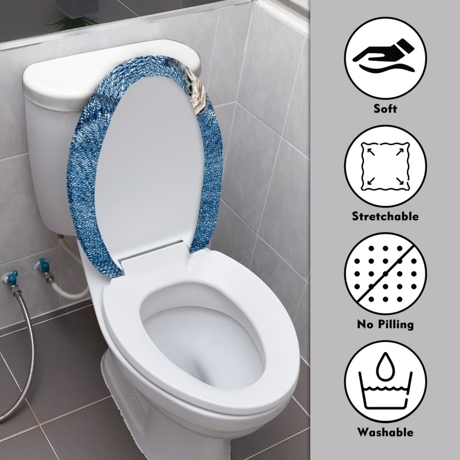 Dimensions de Coussin de toilette : Les dimensions de Coussin de toilette sont 36 x 44 cm. L'installation est facile : il suffit de placer le Coussin de Siège de Toilette Housse sous le siège des toilettes et de tirer l'anneau intérieur en coton dessus. Superbe cadeau : Housse de Siège de Toilette en Peluche C'est un cadeau qui convient à tout le monde. Il s'adapte parfaitement au siège des toilettes et ne tombera pas. Baffect Housse de siège de Toilette épaisse et antibactérienne de Luxe Allongé et flexible, adapté aux toilettes de différentes formes. Housses de siège de toilette doux, chaud, durable et élastique. Vous recevrez : vous recevrez 4 housses de siège de toilette, nous avons 4 housses de siège de toilette douces de différentes couleurs pour vous, vous permettant de dire adieu au siège de toilette froid.Matériau de qualité supérieure : la housse de siège de toilette est fabriquée en fibre de haute qualité, douce, chaude et durable.Forme : la housse de siège de toilette est ovale... Nourrit en douceur votre santé, maintient l'hygiène et réchauffe votre peau. Matériau : Notre Housses de siège de toilette est fabriqué en tissu de haute qualité. Peut être lavé à la main ou en machine et réutilisé après séchage. Protection Siège WC Hiver 4 Pièces Housses De Siège De Toilette,Coussin De Toilette Siège Toilette Chaud Description du produit [Matériau épais] Le siège de toilette épaissi est fait de fibre douce et respectueuse de la peau de haute qualité, chaude, confortable, respirante, difficile à coiffer, et peut être lavée à plusieurs reprises et utilisée toute l'année. [Ce que vous obtenez] Vous recevrez 4 sièges de toilettes qui peuvent être étirés jusqu'à une longueur maximale... Housse de Siège de Toilette en Peluche particulièrement adapté aux femmes, aux jeunes ou futures mamans, aux enfants et aux personnes âgées.