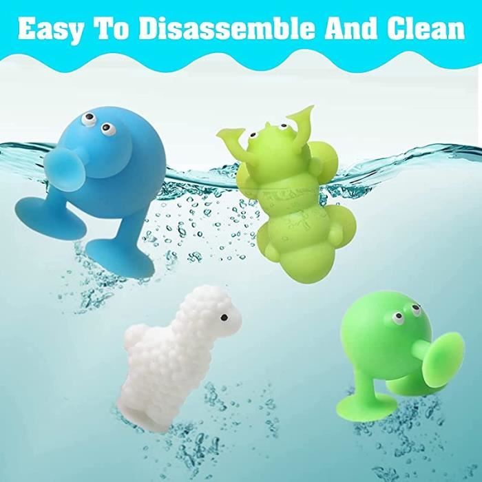 Avertissement De Sûreté Ne convient pas aux enfants de moins de 3 ans Stimulation Sensorielle: Le jouet offre une stimulation sensorielle, notamment pour les enfants autistes, à travers les différentes couleurs, formes et l'adhérence des ventouses. Sécurité et Qualité des Matériaux: Fabriqué en caoutchouc de silicone de haute qualité, le jouet à ventouse répond à des normes de sécurité strictes telles que CPSIA, ASTM F963, EN71 et CE. À utiliser avec de l'eau pendant le bain. VGEBY Sac de jouets de bain à ventouse Tenture murale baignoire douche En même temps, il améliore la motricité fine, la coordination œil-main et la pensée spatiale des enfants. Mode d'emploi Remplissez le jouet si nécessaire. Super Haute Qualité]48 Pièces jouet ventouse bebe enfants est le jouet éducatif idéal pour les jouets de 3 ans et plus avec jeu ventouse construction... Il favorise le jeu créatif et offre aux enfants une variété d'expériences amusantes et d'apprentissage dans diverses situations quotidiennes. Avec 48 pièces déclinées en six couleurs et sept formes, il permet aux enfants de créer des constructions créatives, que ce soit dans la baignoire, près de la fenêtre ou en classe. Ces propriétés peuvent également servir d’outil de relaxation chez les adultes en fournissant des stimuli tactiles. Jouets éducatifs Motricité Fine TDRFL-48 Pièces Jouets À Ventouse Silicone,Jouets De Bain Jouets Silicone Dinosaures 48 Pièces Vicloon Enfants Spinner Jouets, 3PCS Jouets Bain Baignoire Spinner avec... Il est exempt de BPA et de latex, ce qui le rend sans danger pour les jeunes enfants et ne laisse aucun résidu sur les surfaces.