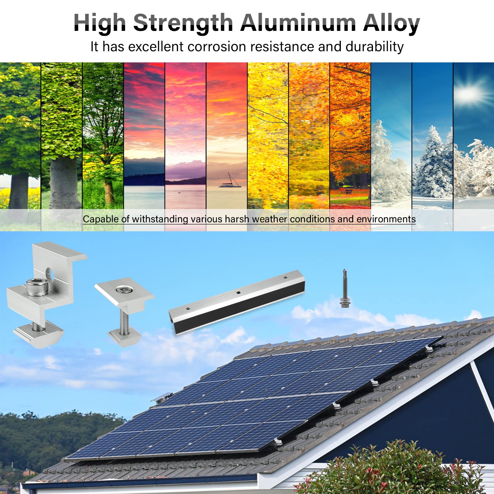 Kit de fixation au sol pour 6 panneaux solaires en portrait - | SoluSun 【Matériel de qualité】:Our Support Montage Panneau Solaire en Z est fabriqué en alliage d'aluminium, avec une haute résistance, une résistance à la corrosion et une résistance aux UV, plus durable que les clips de montage en aluminium ordinaires. Support Aluminium Toiture Plat 6 Pièces Kit De Support De Panneau Solaire 30mm,Support De Kit Montage Solaire Toit 💖Spécifications: -Nom du produit: Accessoires pour panneaux solaires -Matériau: Support de panneau solaire : alliage d'aluminium Clip de drainage solaire : plastique PC -Couleur:Argent et noir -Taille: 30 mm 📜 Contenu de l'emballage: Support de panneau solaire*6 Clip de guidage de l'eau solaire*6 Les clips de drainage des panneaux solaires peuvent automatiquement drainer la boue et l'eau sous les bords du cadre afin de prolonger la durée de vie des panneaux solaires Vous recevrez 6 pièces de support de panneau solaire et de clips de guidage d'eau solaire, qui peuvent être utilisés ensemble pour répondre à vos besoins lors de l'installation de panneaux solaires. Kit de 12 Pinces de Fin de Panneau Solaire 30 mm Noir... Il peut assurer un drainage continu sans alimentation électrique externe et empêcher les panneaux solaires d'être endommagés par une accumulation d'eau à long terme. 【Conception intelligente】 : Notre Support Panneau Solaire en Aluminium 30 mm Conception intelligente] : notre conception en forme de Z s'adapte parfaitement aux panneaux solaires, a un bon effet de fixation et améliore considérablement la stabilité Cela permet non seulement de prolonger la durée de vie du panneau solaire, mais aussi d'améliorer l'efficacité de la conversion énergétique Le support de panneau solaire convient au montage et à la fixation des panneaux solaires sur les toits plats ou inclinés des yachts, des voitures, des bateaux, des maisons, etc. 【Amélioration de l'efficacité】 :Clips de Drainage d'eau pour Panneaux Solaires Peut gérer efficacement l'écoulement de l'eau. ✨✨ Fonctionnalité: Vous recevrez 6 pièces de support de panneau solaire et de clips de guidage d'eau solaire, qui peuvent être utilisés ensemble pour répondre à vos besoins lors de l'installation de panneaux solaires.