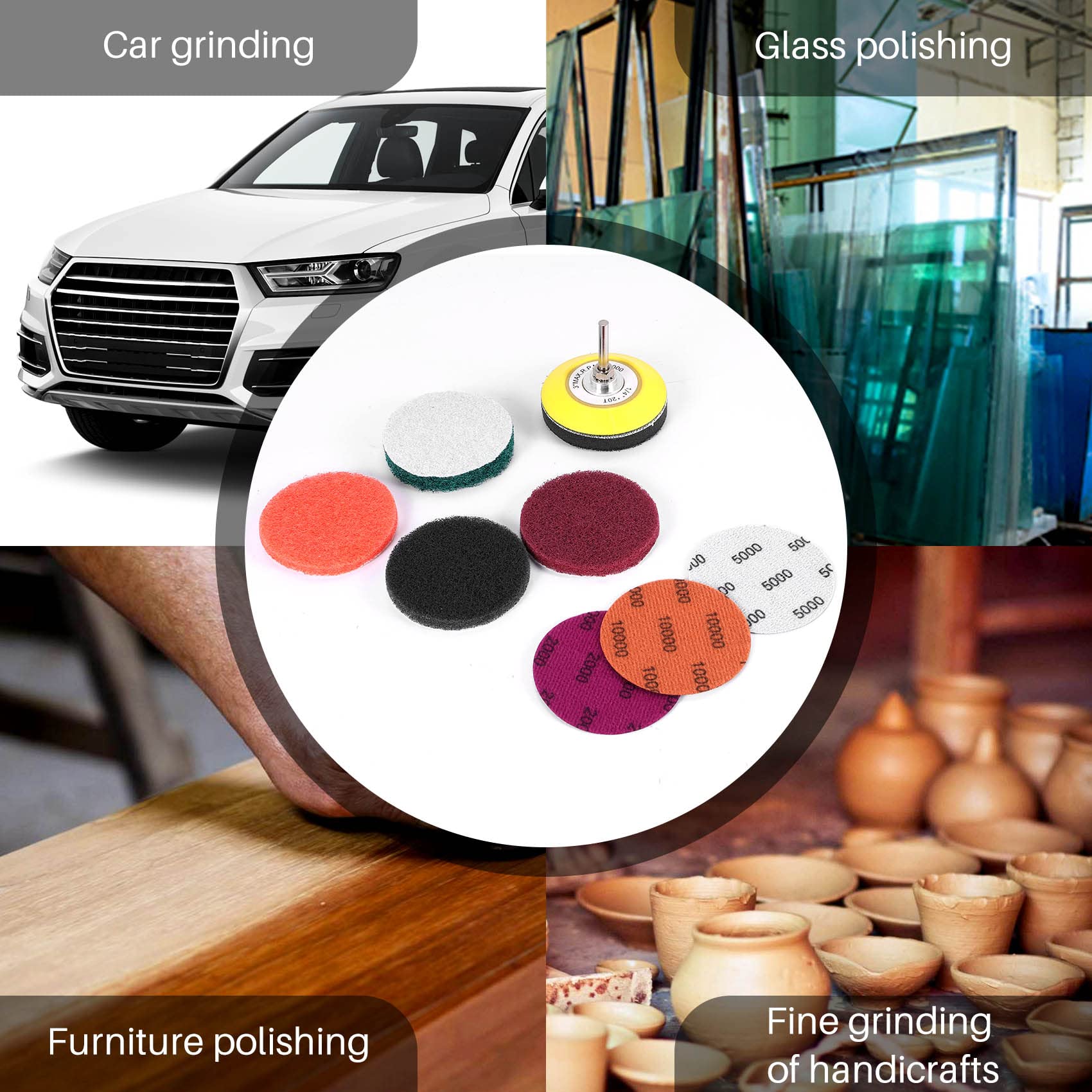 Accessoires de polissage de papier de verre doré multicolore de 107 CM Différentes options de papier abrasif : Comprend 15 feuilles de papier abrasif de 12 grains, du P60 au P10000, pour une gamme complète d'applications de ponçage, du façonnage grossier au polissage haute brillance. Plus besoin de changer de jeu en cours de vente Papier Verre P60 à P10000 Rénovation Phare 193 Pièces Kit Polissage Voiture De 5 Cm, Comprenant Du Papier De Verre Polish Phare Voiture Description du produit :1., Tous les accessoires sont emballés dans une boîte pour éviter toute perte. Matériau durable : Notre kit renovation phare voiture est fabriqué en carbure de silicium de haute qualité, résistant à la déchirure et à l'usure. Accessoires de polissage de papier de verre doré multicolore de 107 CM... Cela permet un gain de place et facilite le transport en extérieur., 2., Les filetages intérieur et extérieur assurent un ajustement parfait entre la meule et la bielle. Différentes options de papier abrasif : Comprend 15 feuilles de papier abrasif de 12 grains, du P60 au P10000, pour une gamme complète d'applications de ponçage, du façonnage grossier au polissage haute brillance. Ponçage efficace : Équipé de tampons éponge de différentes duretés, il convient au bois, au métal, au plastique et à d'autres matériaux, assurant un amortissement des vibrations, un ponçage uniforme et des surfaces sans rayures. Plus besoin de changer de jeu en cours de vente.