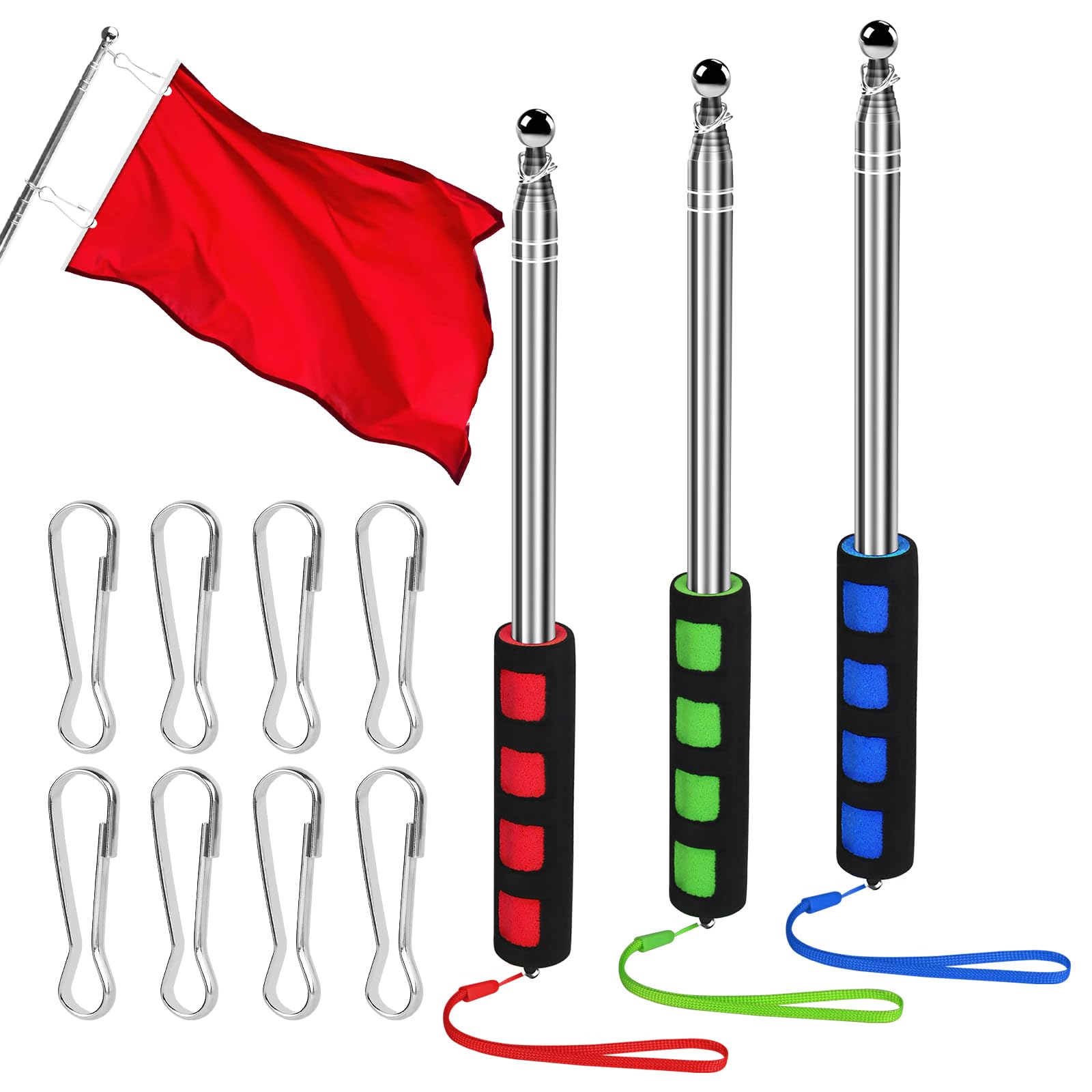 Dantolo 3Pcs Mât Telescopique, Mat Drapeau 2M En Acier La poignée en éponge écologique présente un design ergonomique pour une prise sûre et confortable. Mât Portable Avec Crochets Fournis 3 Pièces Mât Telescopique Drapeau, 2m Mat Drapeau En Acier Porte Drapeau Matériau de qualité supérieure : fabriqué en acier inoxydable de qualité supérieure, notre mât de drapeau est flexible, facile à étendre, stable et résistant à la déformation et à la rouille. Drapeau français extensible - Copin'Art 2 Pièces ât Telescopique Drapeau, 2 at Drapeau en Acier Inoxydable... Utilisations polyvalentes : ces bâtons télescopiques peuvent être utilisés non seulement mâts de drapeau, mais également pour l'enseignement, les voyages, l'alpinisme, le camping et les défilés. Conception télescopique : avec une conception télescopique, notre mât de drapeau de guide touristique peut être ajusté à la taille souhaitée dans une longueur d'étirement maximale de 2 m. Ils constituent un outil essentiel et pratique pour les enseignants, les guides touristiques et les étudiants. Ces mâts peuvent accueillir des drapeaux jusqu'à 90 cm x 150 cm, ce qui les rend parfaits pour les guides touristiques, le camping en plein air et comme pointeurs pour enseignants. Il peut facilement se glisser dans votre poche ou votre sac à dos lorsqu'il n'est pas utilisé, et chaque mât de drapeau est livré avec une ficelle pour l'accrocher facilement au poignet. Spécifications : Nom du produit : Mâts télescopiques Matériau : Acier inoxydable Couleur : Bleu, rouge, vert Quantité : 3 pièces Longueur : 200 cm déplié et 27 cm plié Occasion : Enseignement, voyages, alpinisme, camping et défilés.