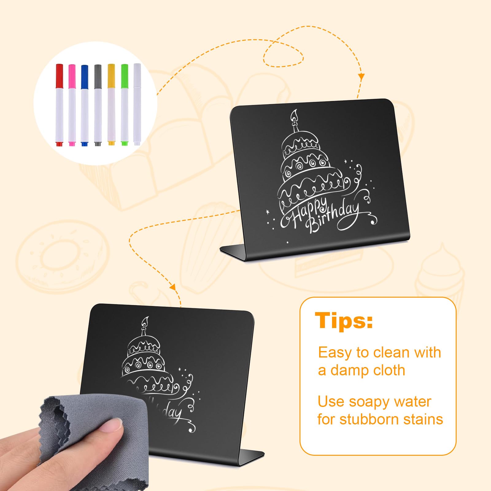 Le revêtement noir mat assure une écriture fluide et une réduction efficace des reflets, garantissant un texte clair et visible. Le contenu s'efface facilement à l'aide d'un chiffon humide, sans laisser de résidus ni de rayures. EFFACEMENT FACILE : comprend deux chiffons de nettoyage gratuits spécialement conçus pour les surfaces de tableau noir. MATERIAUX DE QUALITE SUPERIEURE : fabriqués à partir de PVC de haute qualité, nos mini-tableaux noirs sont robustes et durables, résistants à la pression et à la déformation. Craie Pour Tableau Noir Ardoise Craies Couleurs Small Foot - Avec Craies Et Éponge - Pour Enfants Dès 4 Ans - Dessin Et Apprentissage Ardoise Enfant Veuillez le retirer avant utilisation pour une expérience d'écriture optimale La base en forme de L assure un placement stable et vertical, adapté à divers besoins de signalisation et à de multiples scénarios d'utilisation, tels que les réunions de famille et les affichages commerciaux CONTENU COMPLET DU SET : le set comprend 40 mini-tableaux noirs en forme de L, accompagnés de 7 marqueurs de couleur et de 2 chiffons de nettoyage dédiés, offrant une quantité suffisante. Lot de 12 craies colorées avec porte craie réglable - Craies... Sa nature libre d'écriture permet des mises à jour instantanées des informations, ce qui augmente la flexibilité et la personnalisation de vos arrangements CONTENU COMPLET DU SET : le set comprend 40 mini-tableaux noirs en forme de L, accompagnés de 7 marqueurs de couleur et de 2 chiffons de nettoyage dédiés, offrant une quantité suffisante. Réutilisable pour une écriture répétée, ce qui élimine le remplacement fréquent des étiquettes et augmente l'efficacité étiquettes Prix Tableau Noir 20 Pièces Mini Tableau Noir, Mini Ardoise, Panneau D'affichage, Rableau Noir Craie Avec 1 Stylo Accessoire Signalétique Café Restaurant Avec cet amusant autocollant mural, les murs de la chambre de vos enfants, de votre salon, de votre cuisine et de toute autre pièce appropriée se transformeront en tableaux noirs fonctionnels. Les enfants pourront y dessiner et les membres de la famille pourront y écrire des messages fréquents Qu'il s'agisse de marques récentes ou de notes anciennes, un simple essuyage suffit pour redonner au tableau son aspect d'origine.