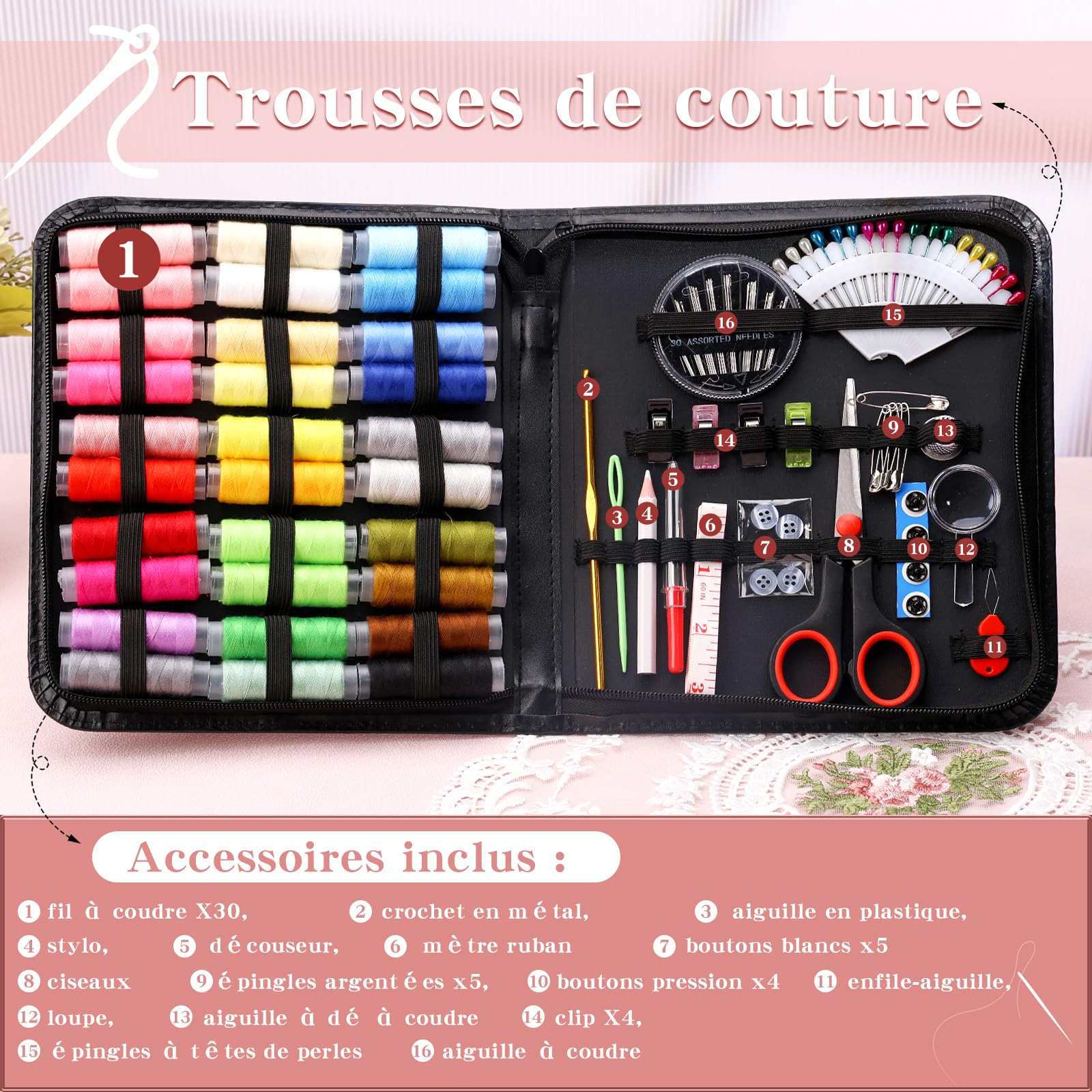C'est également le kit de couture le plus polyvalent du marché, idéal pour vos travaux de couture quotidiens. Idéal pour les projets créatifs : Que ce soit pour le travail du tissu, la couture de textiles de maison, le patchwork en extérieur, la préparation de voyages ou la fabrication de poupées, ce kit de couture multifonction pour le cuir garantit des résultats toujours excellents. Pour répondre parfaitement à vos besoins pratiques et à vos idées créatives, il est le compagnon indispensable de vos projets créatifs. 【Organiseur de haute qualité】Ce kit de couture comprend 37 accessoires : 2 enfile-aiguilles, 1 agrafeuse, 25 aiguilles en acier, 6 fils et 2 épingles de sûreté ; tout ce dont vous avez besoin pour vos travaux de couture et de réparation. Les aiguilles ovales en acier pointues garantissent une couture fluide et sans frottement, idéale pour la broderie et les réparations précises. Accessoires Couture Aiguilles Couture Enfile Aiguille Machine à Coudre... De plus, c'est un outil apprécié en toute saison. 3 : Retirez lentement l’enfile-aiguille de l’aiguille et enfilez le fil dans le chas de l’aiguille. Informations produit : Matériau polyvalent : Grâce à ses aiguilles rigides et à sa compatibilité universelle avec tous les types de tissus, ce kit de couture de 37 pièces est polyvalent. Kit Couture 37 Pièces Kit De Couture 37 Pièces, Nouveauté 2025 : Aiguilles Et Fils Portables Outils De Reparation Kit Multi Usages Pour Loisirs Creatifs~p186056249 Needite Couture Contenu du paquet]Vous recevrez un kit de couture de 37 pièces contenant 25 aiguilles en acier inoxydable de différentes tailles, 2 dés à coudre en métal... Réparez facilement les vêtements préférés de votre animal ou les peluches de votre enfant à la main ; vous pourriez facilement succomber au plaisir du bricolage. Même pour les projets plus longs, vous restez en sécurité sans compromettre la maniabilité. 【Équipement de base du kit de couture】L'enfilage est grandement facilité grâce à des aiguilles sûres et résistantes aux perforations, garantissant une utilisation simple des outils et tenant compte des différentes compétences manuelles. C'est également un outil indispensable pour les bricoleurs et les réparations domestiques de base, que vous soyez débutant ou professionnel. Kit de couture 37 pièces, kit de couture portable avec 【Facile à transporter】Grâce à sa taille idéale, ce kit de couture se glisse facilement dans une valise, une mallette, un tiroir de bureau ou même un compartiment de voiture. Fini les piqûres gênantes : ce kit de couture avec accessoires garantit non seulement une manipulation sûre, mais aussi un rangement peu encombrant, idéal pour les familles et les couturiers réguliers. Idéal pour les débutants et les professionnels : Avec ses aiguilles fines et ses longs chas, ce kit de couture de voyage est parfait pour les débutants, tandis que les couturiers expérimentés apprécient particulièrement sa polyvalence. Rangement sûr et ordonné : Les aiguilles pointues et le découseur trouvent un emplacement sûr et organisé dans l’étui de protection inclus, tandis que le dé à coudre inclus protège vos mains des blessures.