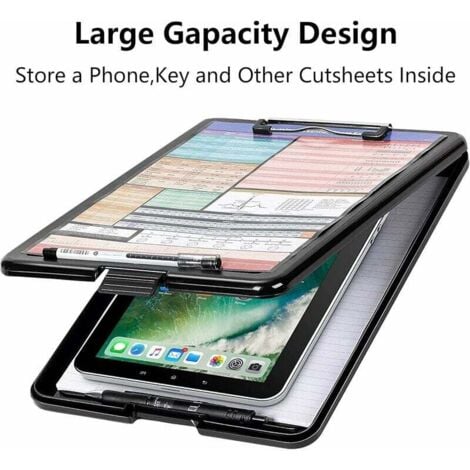 Porte-bloc pliable Facile à transporter : Le porte-bloc A4 est léger et facile à transporter en voyage et en voyage d'affaires. 📋 Planche à pince avec couvercle : notre planchette à pince a4 avec couvercle a des bords arrondis de conception, pas facile de rayer votre main. Il y a un trou sur le dessus du dossier pour le stockage de stylo séparé, facile à transporter. Porte-bloc A4 pliable Design raisonnable : Nos porte-blocs pliables sont rivetés, robustes et ne glissent pas facilement, et le design d'ouverture et de fermeture rembourré est léger et pas facile à casser, de sorte que vous pouvez l'utiliser librement. DoocliB Planche à pince A4 avec compartiment de rangement, clips haute performance, avec couvercle, poids léger, écriture lisse pour le travail, idéale pour l'école, la maison, le bureau, (noir Texture givrée simple, plus pratique à utiliser. Paket enthält:10 x Klemmbrett A4 Grand choix de plaques à pince & porte-blocs dans différentes matières : plastique, bois, métal, ... avec ou sans rabat, très pratiques pour travailler en... 📋WIDE USE : ce porte-documents portable peut être utilisé pour des réunions d'affaires, des visites médicales, des activités d'enseignement, des croquis de paysages, etc. Spécification : Matériau : alliage plastique polypropylène Taille : 1 environ 23,5 x 32 cm Couleur : noir Couleur : noir La conception unique du double clip permet un meilleur tri des matériaux en papier. Planche à Pince A4 10 Pièces Avec Couvercle, Classeur Noir En Support Pour Prise De Notes Description Renforcé par un insert en carton, il dispose d'un mécanisme de préhension élastique pour maintenir le papier La plaque noire mate met non seulement en valeur la texture de la planche à pince a4, mais protège également vos documents des rayures et des empreintes digitales.