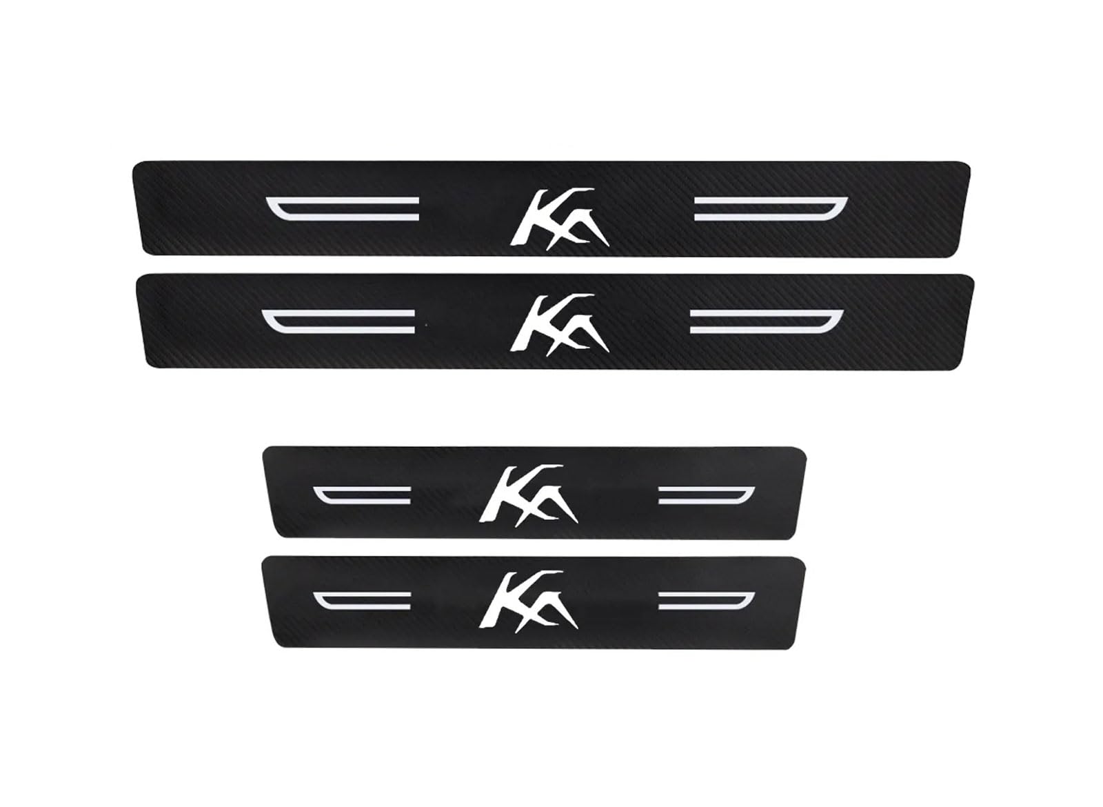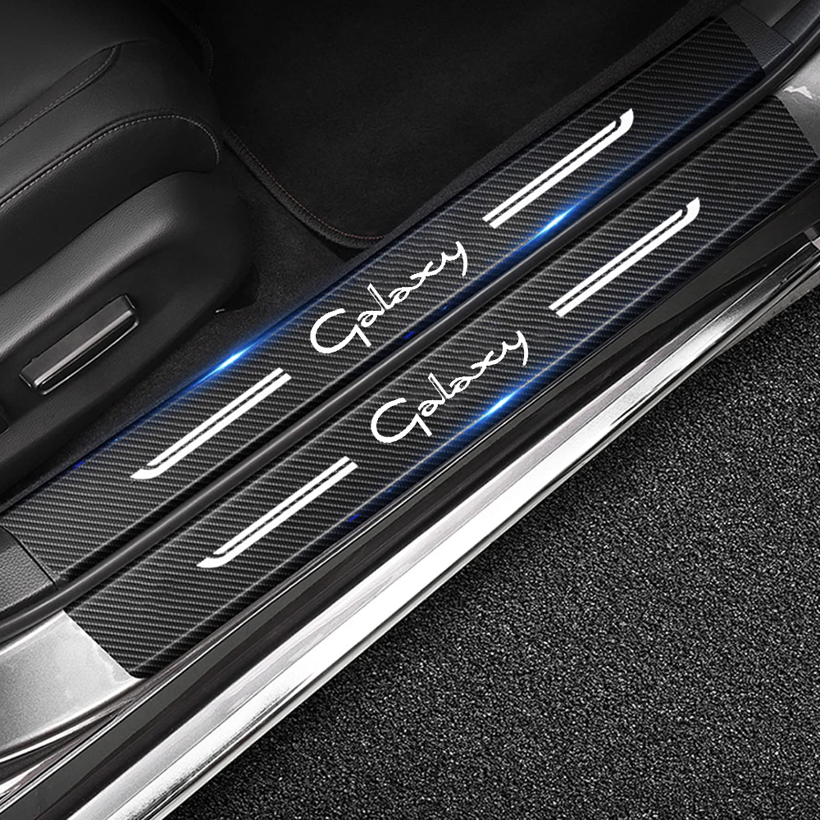 Adhésif 3M Haute Adhérence Générique 4 Pièces Protecteur Pédale Seuil Porte En Fibre De Carbone Protection Seuil Porte Fibre Carbone Protecteur de Seuil de Porte de Voiture 5cmx10m Fibre Carbone L'autocollant anti-rayures en fibre de carbone auto-adhésif est super collant et peut être collé sur n'importe quelle voiture et peut être retiré à tout moment sans laisser de résidus., Installation : 1., Nettoyez la surface cible pour vous assurer qu'il n'y a pas d'huile et de poussière dessus ; 2., Retirez le film protecteur du ruban adhésif et collez-le au bon endroit ; 3., Assurez-vous que l'autocollant recouvre complètement la surface du véhicule. Forte adhérence pour une protection durable. Pour Mazda 3 - Pédale de seuil de porte en fibre de carbone pour Mazda... Auto-adhésif : facile à décoller et à coller. Le logo est estampé à partir du moule. Il est conservé de manière permanente et le logo en relief avec un matériau en feuille d'or a une très bonne brillance. Matériau et fabrication : fabriqué en cuir de fibre de carbone pour l'extérieur, l'autocollant au dos du seuil de porte est fabriqué à partir d'un adhésif 3M haute performance.