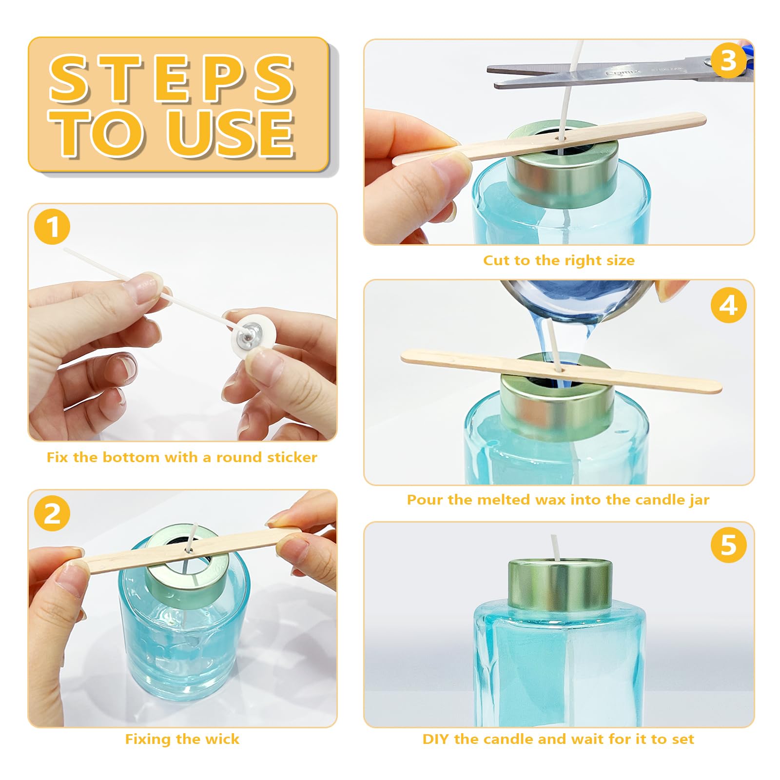 BINJCE 100 Pièces Meche Bougie, Meches pour Bougies 10 cm, Kit Meche a Bougie,Mèches pour Bougies, avec Supports de Bois et Autocollant meches pour ,Fabrication de Bougies (10cm Set Conseils, astuces et inspiration pour réalises ses propres bougies. Découvrez le matériel nécessaire et les kits pour réalises les bougies par soi-même Mèches Sans Fumée èche Bougie,50 Pièces èches De Bougie Naturelles,èche De Bougie Raclette Bougie 2 Personnes Pack économique : le lot de mèches comprend 60 mèches (10 cm/30, 15 cm/30, 20 cm/30), 1 support de mèche et 2 tubes de maintien de mèche pour la fabrication de bougies. La cire brûle proprement et sans toxicité, sans plomb ni zinc, garantissant l'absence d'odeurs désagréables pendant la combustion. èche Bougie,50 Pièces èches de Bougie Naturelles,èche de Bougie... Accessoires indispensables : le support de mèche, l'adhésif pour mèche et le tube de positionnement de mèche maintiennent la mèche droite et centrée lorsque vous versez la cire dans les récipients. Convient pour la cire de soja, la paraffine, la cire de palme et les cires mélangées aux parfums riches, y compris l'aromathérapie. Nous offrons un service clientèle de qualité supérieure. Bougies DIY : Créez vos propres bougies créatives pour les anniversaires, Noël, le réveillon du Nouvel An et d'autres occasions spéciales afin d'ajouter une touche de gaieté supplémentaire à vos célébrations.