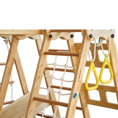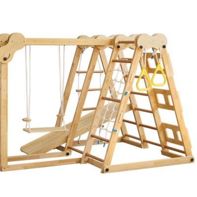Montessori Kit d'échafaudage en bois avec rampe double face, triangle d Plus de possibilités d'aventure : l'ensemble d'aire de jeux 9 en 1 comprend des rochers d'escalade, des toboggans, des balançoires, des filets d'escalade, une échelle d'escalade pour une aventure incomparable. Aire De Jeux Intérieure Bois Échafaudage D'escalade D'intérieur 9 En 1 Pour Enfants, Kit Structure Escalade Intérieure Enfant Aire de jeux d'intérieur 9 en 1 pour enfants - Kit de jeu d'escalade Montessori en bois avec toboggan, balançoire, cadre d'escalade, échelle de corde et filet d'escalade Ce sont des structures simples qui se composent d'échelles, de toboggans et de murs d'escalade. Généralement, elles sont construites en bois ou en métal. Elles... Triangle d'Escalade 7 en 1 pour Enfants avec Toboggan,Rampe Double Face... Il répond à de nombreuses certifications internationales telles que CCPSA, CE, CPC, ASTM F963-17 et CPSIA. Le toboggan est compatible avec les barres de la structure d'escalade et peut être installé aussi bien à l'intérieur qu'à l'extérieur, ce qui permet aux enfants d'avoir de nombreuses possibilités de jeu et de découverte. En grimpant, en se balançant et en glissant, votre enfant améliore l'équilibre, la coordination corporelle et l'imagination spatiale. Avertissement De Sûreté Kit d'escalade Durable et respectueux de l'environnement : le cadre de jeu pour tout-petits est fabriqué en bois naturel certifié FSC et peint avec une peinture à base d'eau sûre. Contenu de l'emballage : 1 cadre d'escalade., 3 patins antidérapants., 1 paire de gants., 2 clés à molette., Vis multiples.