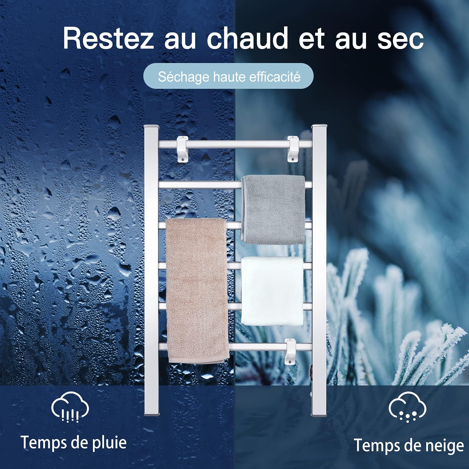 🌻 Résoudre Problèmes avec Linge : En hiver, lorsque le froid rend le séchage du linge difficile, notre radiateur est idéal pour finir de sécher les vêtements de petite taille tels que la lingerie, les chaussettes et les soutiens-gorge. Sèche-serviettes 100W Aluminium Giantex Sèche-Serviettes Électrique 30-60°C Avec 6 Barres En Aluminium Autoportant Radiateur Salle De Bain Il est idéal pour la salle de bain, la chambre à coucher ou partout où il est utile. Doporro Radiateur de Salle de Bain Sèche-Serviette 76x60cm Radiateur à... 🌻 Design Confortable et Pratique : Notre chauffe-serviettes avec trépied peut être placé dans tous les espaces de la maison. Il est idéal pour l'hiver pour ranger les serviettes et les linges humides avant ou après la douche et offre une chaleur agréable en séchant tous les vêtements. GIANTEX Radiateur Sèche-Serviette Électrique Salle de... CaractéristiquesChauffe-serviettes électrique pour garder vos serviettes au chaudTrépied pratique inclus pour placer le radiateur au solPossibilité de fixation murale selon vos espaces à la maisonDesign moderne et dimensions idéales 90x53x35 cmFaible consommation d'électricité 220-240 V avec puissance de 100 WTempératures atteignables idéales entre 45-50 °CPlus de soucis avec le linge qui ne sèche pas en hiver Spécification: Couleur : Argenté Matériau : Aluminium Dimensions en pose libre : 53 cm x 35 cm x 91 cm (L x l x h) Dimensions en fixation murale : 53 cm x 10 cm x 86 cm (L x l x h) Voltage : 220V-240V 60Hz Puissance nominale : 100W Température : 45℃-50℃ Poids brut : 3,2 kg Instructions Le Colis Comprend : 1 x Chauffe-Serviettes Electrique 1 x Notice d'Utilisation Il peut être fixé au mur ou posé au sol grâce au trépied pratique inclus. 🌻 Matériaux Optimaux : Notre radiateur est fabriqué en fibre d'aluminium, un trépied en plastique est inclus mais peut également être installé facilement sur le mur selon vos préférences. Sèche-serviette eau chaude 80x50-100x50-170x50 cm design CUADRO, Cicsa Le radiateur est pratique en toutes saisons et est à faible consommation d'électricité avec une tension de 220-240 V et une fréquence de 60 Hz. Le radiateur est branché sur le courant avec une prise standard européenne.