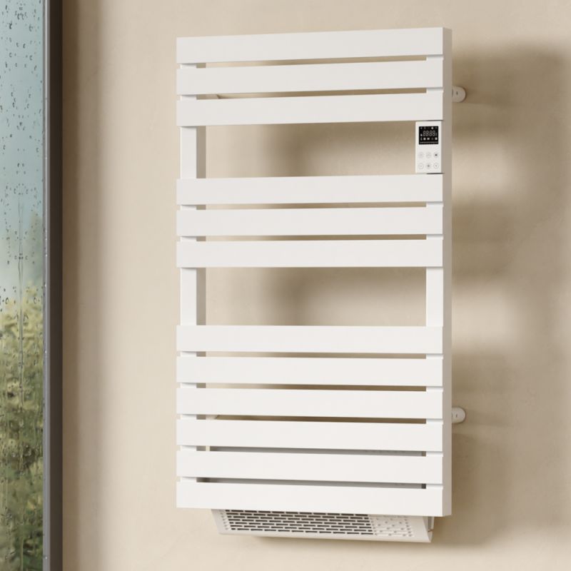 Dimension du produit (500W) : 536mm x 879mmx120mm Coupe-circuit thermique de sécurité anti-surchauffe Seche Serviette Salle De Bain Sèche Serviettes électrique Barres Rondes CEIBO 750w - Chauffage Sèche Serviettes 500W Barres Rondes Sèche-serviettes sec barres plates SIGMA 500w blanc - BATILEC - Mr... Compatible fil pilote 6 ordres Sèche-serviette Ceibo Sèche serviettes avec technologie de chauffe sans fluide. Détection automatique d'ouverture de fenêtres Détection automatique d'ouverture de fenêtres et sauvegarde permanente des réglages et de la programmation , Normes : IP24., CE , NF, ROHS, ERP Informations sur le produit Coloris : blanc époxy Affichage LCD rétro éclairé, Normes : IP24., CE , NF, RoHS, ErP Sèche serviettes avec technologie de chauffe sans fluide. 7 programmes journaliers (0 à 24h) pré-enregistrés et personnalisables individuellement Description Description du produit Sèche serviettes avec technologie de chauffe sans fluide. Aucun entretien, ni risques de fuites Autres caractéristiques techniques Régulation électronique programmable Mode Eco, Confort, Programme, Hors gel, Boost (1H-2h) Sécurité enfant par un verrouillage clavier Existe en 2 puissances : 500 et 750W 7 programmes journaliers (0 à 24H) pré enregistrés et personnalisables individuellement. Mode éco, confort, programme, hors-gel, boost (1h-2h) Sèche-serviettes Batilec, 750 W, barres plates, régulation électronique, blanc mat, sécurité enfant, IP24, garantie normes CE/NF | Leroy Merlin