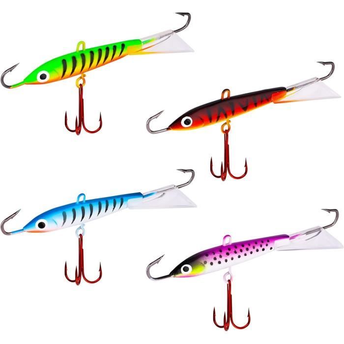 Têtes Plombées Nageuses Poissons YOSOO Gabarits De Pêche Sur Glace 5 Pièces Hameçons De Pêche Sur Glace Matériel Pêche Hiver Ce kit de matériel de pêche sur glace est un excellent cadeau pour les passionnés de pêche sur glace dans votre vie. Tous les gabarits de pêche sur glace comprennent un motif vif de couleurs vives qui, grâce à sa lumière hautement réfléchissante, augmentera le taux de connexion Acheter Kit de 93 jigs pour la pêche sur glace comprenant des têtes plombées, des hameçons et des leurres souples pour l'achigan, la truite, le doré jaune Largement cible pour le bar, le panfish, la perche, la truite, la perche jaune, le crapet, la marigane, le grand brochet et bien d'autres encore. Les meilleurs nouveaux leurres de pêche sur glace pour 2020... Ce kit de matériel de pêche sur glace est un excellent cadeau pour les passionnés de pêche sur glace dans votre vie. Tous les gabarits de pêche sur glace comprennent un motif vif de couleurs vives qui, grâce à sa lumière hautement réfléchissante, augmentera le taux de connexion. Les gabarits de pêche sur glace ont des barbes pointues qui offrent une netteté inégalée et empêchent les poissons de s'enfuir. Avec les appâts de natation souples, les têtes plombées nageuses ressemblent davantage à un vrai poisson.