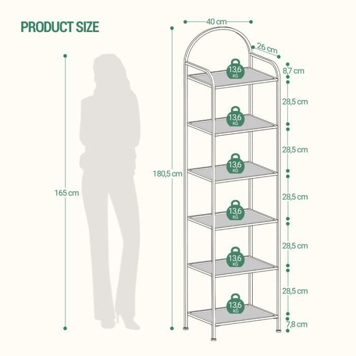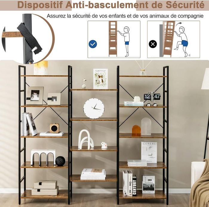Étagère Echelle à 6 Niveaux - Cette étagère échelle à 6 niveaux est conçue avec une grande capacité de stockage, offrant un espace de rangement spacieux pour divers articles. Elle permet d'économiser de l'espace au sol et d'utiliser pleinement votre surface murale. Elle est idéale pour exposer des livres, des plantes ou des objets décoratifs. Veuillez noter la capacité de poids de 20 kg par niveau et éviter la surcharge pour éviter les chutes et les blessures. Bibliothèque Salon Chambre à 4 Niveaux Avec 4 Étagères, 2 Tiroirs Etagere A Echelle Autoportante Avec Cadre En Metal 52 X 39 5 X 134 Cm Industriel 96768261 Sa construction solide garantit qu'elle peut supporter des objets lourds, offrant une solution de stockage fiable pour votre espace. Caractéristiques :6 niveaux d'étagères de rangement pour accueillir une variété d'articlesConception d'étagère ouverte pour accéder facilement à vos effets personnelsCadre en métal robuste pour améliorer la durabilité et la robustessePeut être montée au mur pour utiliser l'espace muralLivrée avec les accessoires nécessaires pour un montage facilePatins de protection pour protéger votre sol des rayuresStyle industriel pour une touche d'élégance intemporelleLargement utilisée dans le bureau, le salon ou la chambreDégagement au sol de 28 cm pour un balayage sans tracas Spécifications :Couleur : Chêne brun rustique/grisMatériau : Bois d'ingénierie, métalDimensions hors tout : 60 x 20 x 183 cm (L x l x H)Capacité de poids de chaque étagère : 20 kgCapacité de poids totale : 120 kgPoids net : 10 kg Le Colis Comprend:1 x Étagère Échelle à 6 Niveaux1 x Manuel de l'Utilisateur Avertissement De Sûreté Attention : cette étagère doit être solidement fixée au mur. DEUBA | Étagère murale - Style échelle 180 cm | Meuble de rangement décoration 5 tablettes... Avec un design peu encombrant, l'étagère de rangement ouverte est un choix idéal pour votre salon, votre chambre ou votre bureau à domicile. Les accessoires de montage inclus rendent l'installation rapide et simple, économisant un espace au sol précieux et maximisant la surface murale. Présentation Polyvalente et Attrayante - Avec un style industriel et un design ouvert moderne, cette étagère échelle à 6 niveaux est un ajout élégant à n'importe quelle pièce. Bibliotheque Livre COSTWAY Étagère Échelle Bibliothèque 5 Niveaux Contre Mur Avec Cadre Etagere Livre Murale Solution de Stockage Peu Encombrante]Optimisez l’espace de votre pièce avec cette étagère équipée d’une armoire de rangement. Elle utilise efficacement l’espace vertical, idéale pour la salle de bain, le salon, ou la salle d’étude.---- [Options de Rangement Polyvalentes]Profitez de 3 étagères ouvertes et d’une armoire à 2 portes pour exposer vos livres, objets... Design Pratique et Peu Encombrant - Le dégagement au sol de 28 cm offre suffisamment d'espace pour un balayage facile.