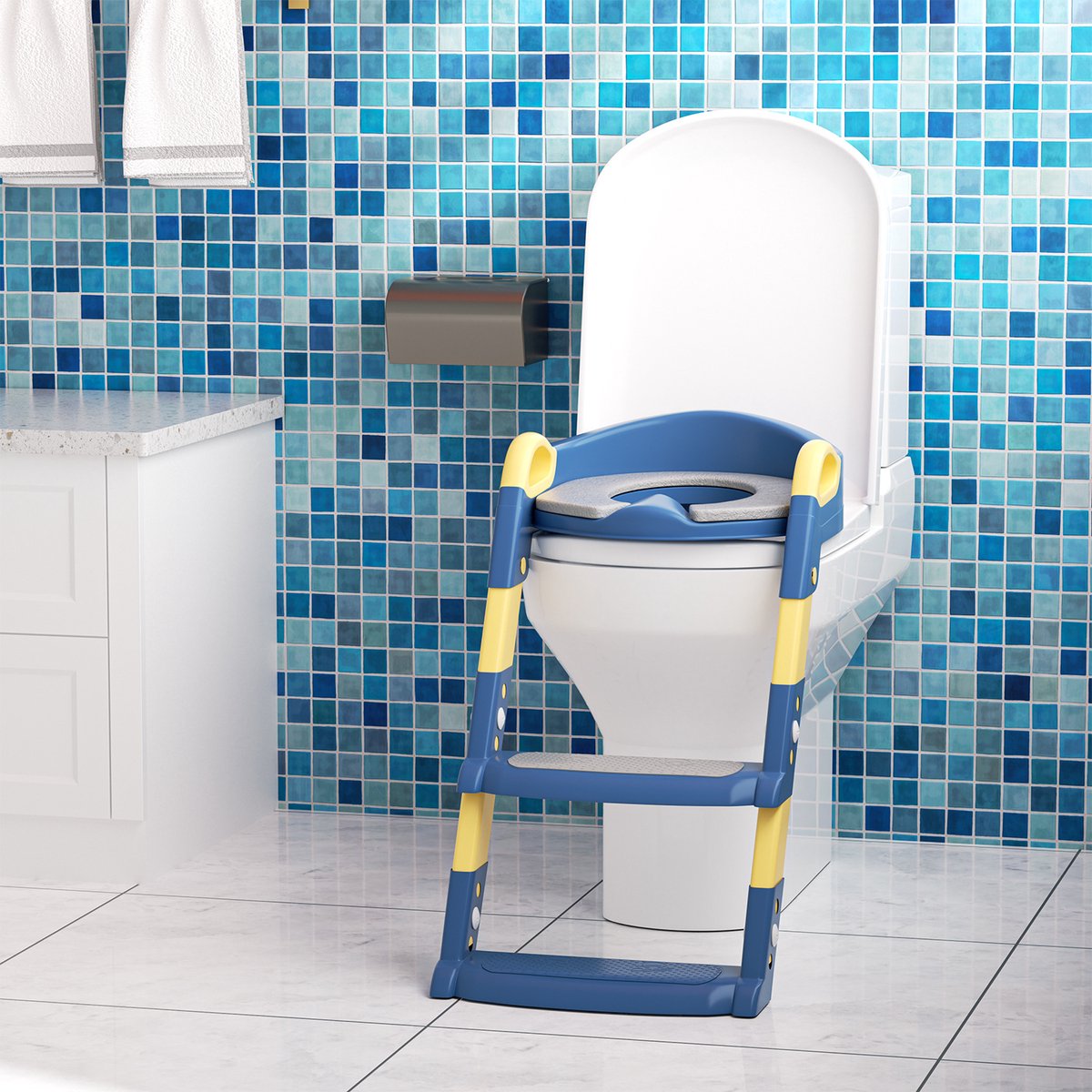 Siège de toilette pour enfants avec escaliers pour garçons et La protection anti-éclaboussures intégrée pour garçon facilite le nettoyage, soulage ainsi les parents et assure l'hygiène de bébé Reducteur Toilette Enfant 1ère échelle De Toilette Pour Enfants, Toilettes Pour Enfants Améliorées Pour Garçons échelle Pour Toilette Enfant Leclerc La mobilité et les étapes de montage simples le rendent indispensable dans la salle de bain, même en voyage. Antidérapant et plus de secousses : le tampon en caoutchouc antidérapant TPE à l'arrière et au bas de l'échelle s'adapte bien au siège des toilettes. La conception antidérapante de Groot surface est plus sûre pour les parents UISEBRT Échelle de toilettes pour enfants, Siège De Toilette Pliable Et... La hauteur réglable garantit un ajustement confortable pour les enfants de différents âges et tailles différentes Utilisation universelle : grâce à la hauteur réglable, ce siège d'apprentissage de la propreté convient aux enfants de différentes tailles. Sa mobilité et ses étapes de montage simples en font un atout précieux pour la salle de bain, même en voyage. UTILISATION CONFORTABLE: Cette chaise de toilette est facile à enlever et à plier, économisant de l'espace et du temps. Solution efficace pour l'entraînement au pot : nos toilettes avec échelle donnent aux parents la certitude que leurs enfants peuvent utiliser les toilettes de manière autonome. Taille et poids : Dimensions plié : 34 x 25 x 54 cm (L x l x H) Ce siège de toilette s'adapte à différentes formes de toilettes, telles que la forme en V, la forme de O, la forme de U, les toilettes intelligentes, les rainures rondes carrées, etc., Remarque importante : 1., Nos toilettes à marches ne conviennent pas aux toilettes carrées 2., Veuillez noter que la taille peut présenter un petit écart en raison de la mesure manuelle et que l'aberration chromatique peut également varier en raison des différentes conditions d'éclairage