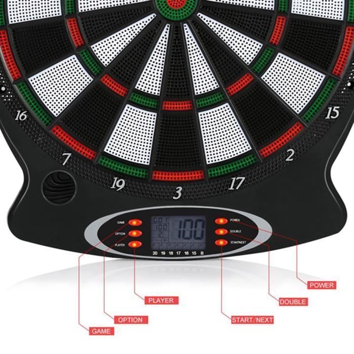 Jeu De Flechette Electronique Jeu De Fléchettes électronique Suspendu - Pwshymi - Affichage LCD Du Jeu Fléchettes 8 Joueurs Description du produit Apprenez le jeu de fléchettes, jouez seul, avec des amis ou les membres de la famille, de manière sûre pour la maison. Améliore la coordination et encourage l'esprit sportif. Une façon amusante de passer une soirée de jeu en famille. Cette cible électronique offre une zone cible de taille standard de 38,1 cm qui vous permet de jouer comme si vous étiez dans un... Jeux De Flechette Cible Électronique AKTIVE - Fléchettes Numérique Gestion de l'alimentation humaine : ce produit dispose d'un arrêt automatique de 30 minutes - Mode d'économie d'énergie - Économie d'énergie - Économise efficacement l'énergie de la batterie, ce qui est à la fois respectueux de l'environnement et pratique. Jeu de fléchettes électronique, jeu de jeux de fléchettes de pointage... Les gens ordinaires peuvent facilement terminer l'installation en suivant les étapes, adapté à tous les types de joueurs. 6 embouts de rechange inclus., Plus sûr. Notation précise et intelligente : ce produit utilise un système de notation informatisé qui score automatiquement et avec précision, évitant efficacement les erreurs de calcul humaines et fournissant aux joueurs des enregistrements précis de score de compétition. Grande variété de jeu : ce produit dispose de 18 catégories de jeux et 159 façons de jouer (EX.