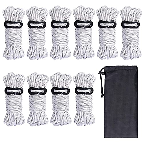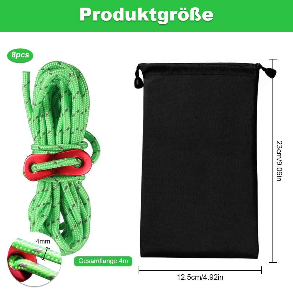 Pack de haubans réfléchissants pour tente, corde de guidage légère pour tente avec tendeurs en Nombreuses utilisations : ces tendeurs réfléchissants sont livrés avec un sac de transport pratique avec cordon de serrage, taille compacte ; parfait pour le camping, la randonnée, les tentes, les bâches, les hamacs, les auvents, le tourisme sac à dos, le trekking, le cyclisme, la pêche et la chasse. Hauban Tente Réfléchissant Sécurité Nuit Haubans Réfléchissants, 4 M, Haubans Légers, Cordon De Tente, 4 Pièces Haubans De Tente Portable et ultra légère : les tendeurs avec tendeurs mesurent environ 4 m de long avec un diamètre de 4 mm, et 12 cordes de tente pèsent au total environ 1,4 kg. Touwen de haubanage de tente avec poulie-corde de guidage de tente réfléchissante de 4mm avec ajusteur en aluminium pour tentes d'auvent de randonnée de camping en plein air (paquet de 4 10x tendeurs triangulaires de haubans métalliques - Tendeurs de haubans... Ajustement facile de la longueur : 12 tendeurs en aluminium sont inclus dans la livraison, ce qui permet un ajustement facile et robuste et peut être utilisé pour la fixation de bâches de tente Solide et durable : le noyau intérieur est en nylon de haute qualité, qui peut supporter une charge allant jusqu'à 260 kg et fonctionne bien même dans des conditions météorologiques difficiles Utilisation : aide au réglage de la tente ou de la bâche facilement lorsque vous faites du camping, de la randonnée, du sac à dos, peut également être utilisé pour attacher l'auvent Heavy Duty & Extremely Strong : le noyau intérieur de 4 mm d'épaisseur est fabriqué en nylon de haute qualité, ce qui peut supporter une charge allant jusqu'à 551 kg., peut être portée. Renforcement réfléchissant : contrairement à la corde de tension réfléchissante habituelle, HIKEMAN dispose de 2 fils réfléchissants entrelacés qui permettent une meilleure visibilité même en cas de très faible luminosité DAJAVE Lot de 12 haubans réfléchissants de 4 mm avec tendeur pour camping, randonnée, tentes d'auvent, cordes de haubans réfléchissantes de 4 m pour tente Pourquoi choisir notre produit ? Corde de camping hautement réfléchissante : les tendeurs de 4 mm sont uniques et très réfléchissants.