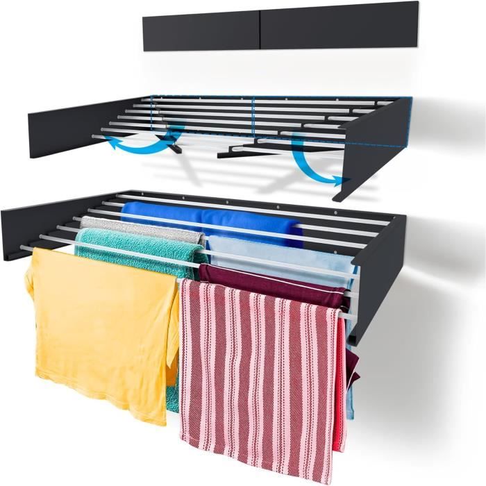 Avec ses 5 tiges en acier inoxydable et ses deux bras latéraux, il maximise la capacité de séchage tout en préservant l'espace - parfait pour les petites maisons ! Étendoir À Linge Mural Pliable Intérieur Extérieur Utilisation... Idéal pour les serviettes, les jeans et le linge volumineux, c'est une solution robuste mais légère pour les besoins de séchage quotidiens. Ce séchoir se range discretement, libérant votre espace de vie. Séchoir Mural Pliable TYXTYX Pliable Séchoir À Linge Mural Aluminium, Étendoir Mural Compact, Porte-Vêtements Mural Pour Intérieur & Extérieur, Économie D'espace, Installation Facile Support Linge Espace Gainé 【Robuste et Durable】Le cadre est en acier au carbone de 1., 4 mm d'épaisseur et les 5 tiges sont en acier inoxydable de première qualité, ce qui équivaut à 400CM de fil de suspension linéaire et peut supporter un poids maximum de 25 kg. 6 Tiges Solides : Offre de l’espace pour sécher vêtements, serviettes, linge de bain – supporte jusqu’à 30kg (100cm) ou 25kg (80cm). Dimensions dépliées: 80 x 40 x 10CM. Il suffit de percer quelques trous, de le fixer et de commencer à sécher immédiatement - aucune installation compliquée n'est nécessaire! 【Polyvalent pour Tout Espace】Parfait pour les salles de bains, les balcons ou les buanderies, ce séchoir à linge pliable sèche les vêtements, les chaussures et les accessoires sans effort. Pliable & Rétractable+Economie d’Espace Se replie complètement contre le mur – parfait pour petits espaces (salon, balcon, entrée). 【Peu Encombrant et Compact】Cet étendoir à linge mural se déploie sur 80CM de long, offrant ainsi un vaste espace de séchage, tout en se repliant à plat contre le mur (seulement 2., 5CM d'épaisseur) lorsqu'il n'est pas utilisé. Avec ses 5 tiges en acier inoxydable et ses deux bras latéraux, il maximise la capacité de séchage tout en préservant l'espace - parfait pour les petites maisons Espace Supplémentaire Invisible Ces barres se déploient latéralement, offrant un rangement “caché” pour cintres ou petits linge – parfaits pour sous-vêtements, écharpes ou chaussettes. Que ce soit à l'intérieur ou à l'extérieur, il constitue un complément pratique à toute maison. Etendoir à Linge Mural Pliable en Aluminium - Marque FDIT - Blanc