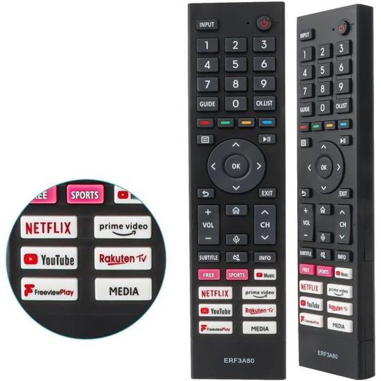 Télécoande vocale Bluetooth originale CT-8563 copatible avec Toshiba... Télécommande vocale - HURRISE - G30 - 33 touches - Gyroscope 6 axes 85E7NQ-PRO 75U6NQ 75U69NQ 75U62NQ 75E7NQ-PRO 75E7NQ 75E79NQ 75E71NQ 65U6NQ 65U69NQ 65U62NQ 65E7NQ-PRO 65E7NQ 65E79NQ 65E71NQ 65A7NQ 65A79NQ DESIGN ERGONOMIQUE: léger et facile à saisir. Contrôle à Distance Tv Sans Programmation ALLIMITY ERF2AA36 Télécommande Vocale Compatible Avec Hisense Remplacement Télécommande TV Facile Offre une distance de transmission plus longue et des performances de contrôle à distance stables. FACILE À UTILISER: aucune programmation ou installation requise. ENTIÈREMENT FONCTIONNEL: la conception de la télécommande couvre toutes les fonctions de l'ancienne télécommande. Si vous ne trouvez pas votre télécommande, votre manuel d'utilisation aura probablement son dessin, que vous pouvez comparer aux photos affichées ici.