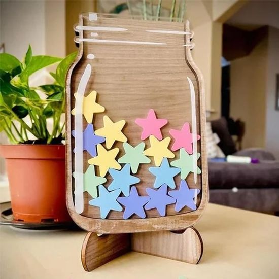 Système Motivation Enfants HSLXBY Bocaux De Récompense Pour Enfants,Bocal Récompense Aujourd'hui Le Bonheur bocaux à récompenses en bois avec jetons pour enfants et école Tableau de récompense (enfant) … | Tableau de récompense, Tableau de comportement, Tableau de... Convient pour les familles pour motiver les enfants à effectuer des tâches quotidiennes ou les écoles pour récompenser les élèves exceptionnels. Verre de récompense pour enfants : vous recevrez un bocal plat avec fond en bois et autocollants qui contient 100 étoiles colorées (20 jaunes, 20 en jaune, bleu, violet, vert et rouge rose) avec 2 bandes d'aspiration magnétiques, des autocollants alphabet pour tableau blanc et 4 cartes de tâches en forme d'étoile. Matériaux de qualité supérieure : le verre de récompense pour enfants est fabriqué en bois et en acrylique transparent, robuste et durable, pas facile à casser, et le verre de récompense personnalisé est coloré et peut facilement attirer l'attention des enfants et gagner leur amour. Le design avec ouverture supérieure est facile à placer, peut être accroché ou placé sur le bureau et est polyvalent. verre de récompense pour salle de classe, mais aussi pour l'école pour récompenser les enfants pour de bonnes notes. Merveilleux cadeau : ce verre de récompense est un merveilleux cadeau pour votre enfant. Il est conçu pour donner aux enfants un sentiment d'accomplissement lorsqu'ils sont récompensés par des étoiles et les aider à développer des habitudes saines et un sens des responsabilités. Geston comportement: les cartes prvlèges | Cartes prvlèges, Geston de classe, Geston