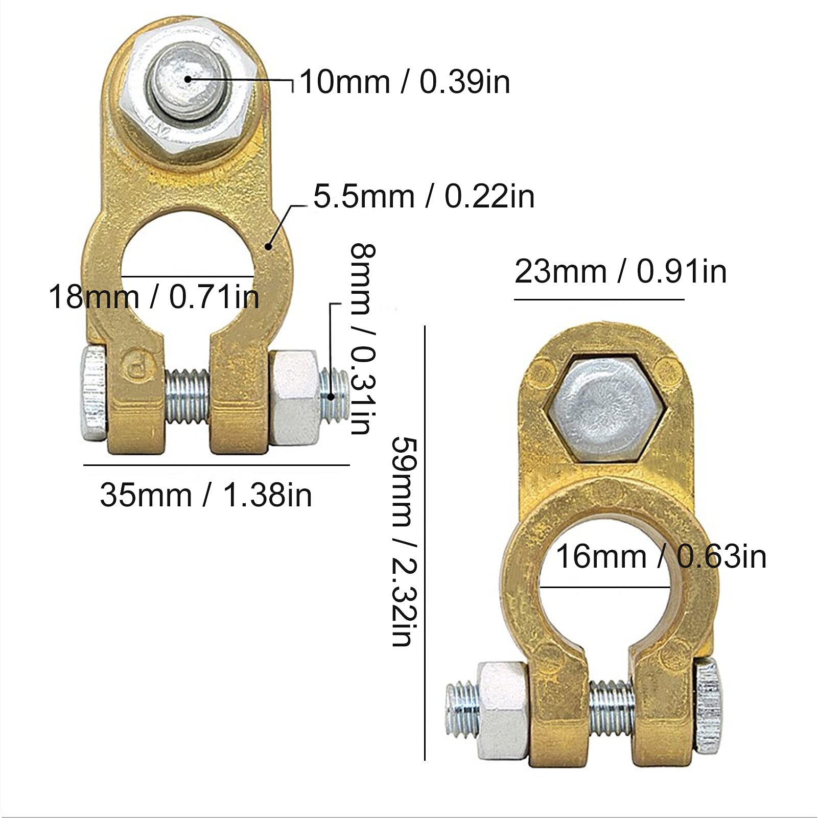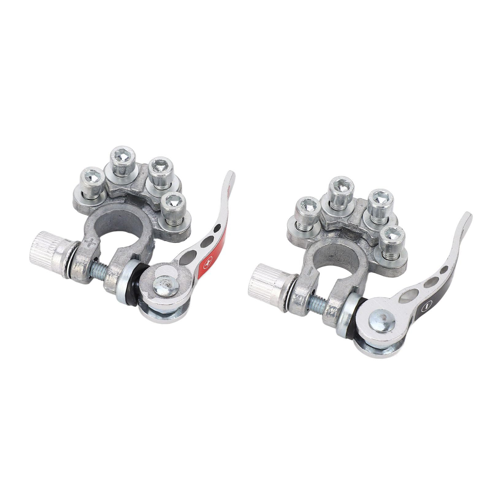 Dimentations : pour un diamètre de fil de 5,2 à 7,4 mm (AWG Gauge 1 - 4) ou une section transversale de 16 à 35 mm². Contenu : 2 bornes de batterie (positif / négatif)., 1 clé Allen., 2 tampons anti-corrosion. Connecteur Positif Rouge Négatif Noir FHE-Borne De Déconnexion Rapide De La Batterie Connecteurs De Batterie à Dégagement Rapide 1 Conductivité élevée Résistance Corrosion Borne De Batterie Supérieure Connecteurs De Borne De Batterie À 4 Voies Déconnexion Rapide Pour... Pince de voiture 12 V - Fermeture rapide - Avec inscription positive et négative - Facile à identifier. ★ Ces pinces de batterie peuvent être utilisées pour l'extension de la batterie, le circuit parallèle et la connexion de masse. Diamètre du boulon : 6 mm., Poids : 220 g/paire. Diamètre intérieur positif: 17,5 ~ 19,1 mm, diamètre intérieur négatif: 15,9 ~ 17,5 mm. 1 clé Allen fournie pour une installation facile., Déconnectez rapidement. ★ Le kit de bornes de batterie peut être utilisé dans les batteries de voitures, camions, caravanes, camions, bateaux, etc. Taille du fil minimum: 16 mm (5/8)., Max. Diamètre intérieur du pôle négatif : 15,9 ~ 17,5 mm. Conçu pour plusieurs connexions de câbles. Des clés hexagonales sont fournies pour une installation facile. Une fois la batterie installée, elle est connectée à la borne de la batterie en appuyant sur le levier, de sorte qu'aucun outil n'est nécessaire Connexion de batterie robuste : les bornes de batterie sont en laiton avec une bonne conductivité électrique et une bonne résistance à la corrosion, ce qui permet de réduire les distorsions de tension et les pertes de transmission. Pince métallique : 9,5 mm / 0,37 pouces, mini pince métallique : 6,5 mm / 0,25 pouces. - Couleur : rouge/noir. LEICESTERCN Connecteurs de borne de batterie en laiton et cuivre