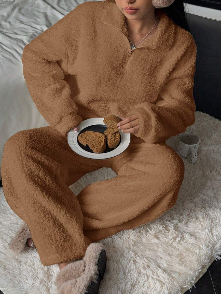 Ensemble Décontracté De Deux Pèces En Trcot, T-shrt À mprmé Ours... Design simple et classique Respirabilité: restez au chaud et respirant Ensemble Thermique Homme SHEIN EZwear Ensemble Décontracté En 2 Pièces Avec Peluche De Chameau Pantalon Slim Décontracté Doux, respirant et extensible pour un confort sans effort toute la journée, vêtements de sport légers pour le printemps, l'automne et l'hiver. ENSEMBLE DE VETEMENTS Femme - Costume deux pièces couleur unie... Vêtements est fabriqué dans un tissu doux, confortable à porter. Ensemble veste et pantalon d'hiver en polaire chaude et épaisse