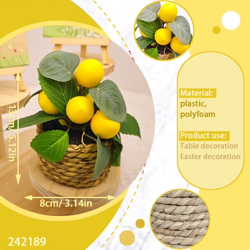 Taille : 9x4 0cm/15,7x3,5 pouces. Kit de décoration 3 pièces imitation citron pour centres de table de salle à manger et salon, faux fruits pour égayer les espaces de la maison · L'article n'a... Le pot mesure environ 8 cm de hauteur, ajoutant une touche de charme rustique à l'ensemble. 4 : Plantes artificielles en pot : elles peuvent être utilisées pour décorer les chambres, les salons et d'autres endroits que vous devez décorer. Fruit Artificiel Printemps été MINGZHE Faux Citron Décoration De Cuisine Fruits Artificiels Décoration Maison Plastique Mousse Avec une hauteur totale d'environ 40 cm et un diamètre de pot de 9 cm, ce centre de table citron est parfaitement dimensionné pour faire une déclaration sur n'importe quelle table ou comptoir. Fonction : 1 : Matériau : plastique, mousse. Liste des paquets : 1 pièce. Après une journée fatigante, un simple coup d'œil à cette décoration de fruits vous aidera à réduire votre stress et à améliorer votre humeur. Cette plante artificielle en pot polyvalente est conçue pour se fondre parfaitement dans n'importe quel décor, que ce soit votre chambre, votre salon, votre cuisine ou votre bureau. 3 : Décoration de bonsaï artificiel : lorsque vous êtes fatigué de travailler pour réduire le stress, vous pouvez regarder cette décoration de fruits. Convient pour l'intérieur et l'extérieur, pour décorer votre chambre, votre salon, votre cuisine, votre bureau et même votre jardin. Longues de 65cm, elles reproduisent fidèlement les citrons avec des couleurs vives et réalistes. En mousse au toucher agréable, légères (110g). Parfaites pour... 2 : La hauteur totale est d’environ 40 cm. Avec ses branches sèches et ses détails de pot de fleurs en plastique, cette décoration de ferme est parfaite pour ajouter une touche d'été à votre plateau de table. Lemon Decor, Lemon Kitchen Decor, Farmhouse Lemon Decor, Lemon Wedding Decor, Le